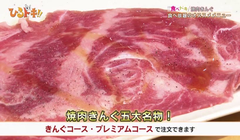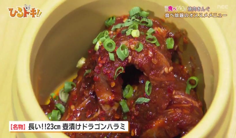焼肉食べ放題のお店・焼肉きんぐの看板商品「五大名物」の中の3商品が極厚!ドでか!長い!メニューにリニューアルしました。ご紹介した「超極厚ハラミ~ガリバタ醤油~」「ドでか!!ロース ねぎ塩ポン酢」「長い!!23㎝ 壺漬けドラゴンハラミ」は、きんぐコース・プレミアムコースで注文できます。