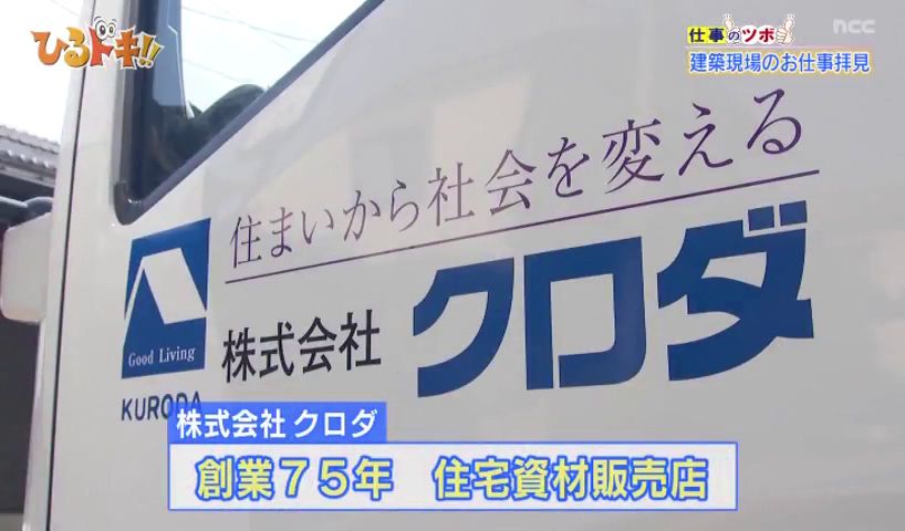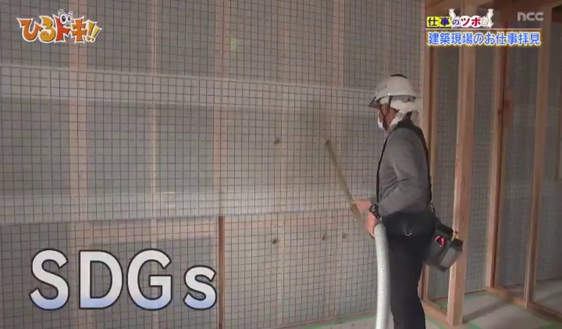 株式会社クロダは創業75年、住まいの生涯価値を売る住宅資材の販売施工店です。今回「デコスドライ工法」という断熱材を壁の中に吹き込む工事を拝見。断熱材に使われるのは新聞紙を原材料としたセルロースファイバーで、断熱材としてはSDGsな素材です。性能を発揮できるように隅々まで充填したり、施工後には徹底した清掃を行うなど丁寧な仕事が印象的でした!