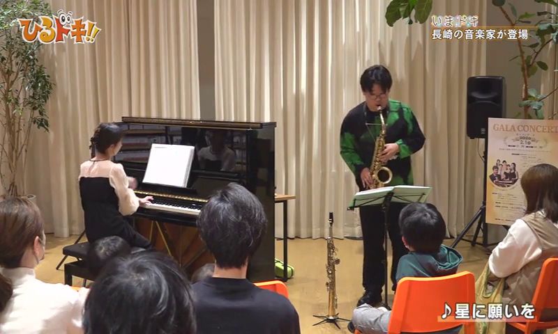 先日、みらい長崎ココウォークで開かれたミニコンサートには、サクソフォーンの方波見一真さん、ピアノの佐々木優依さんが出演。