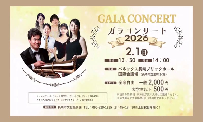 このお2人も出演される長崎市主催「ガラコンサート」が開催されます。