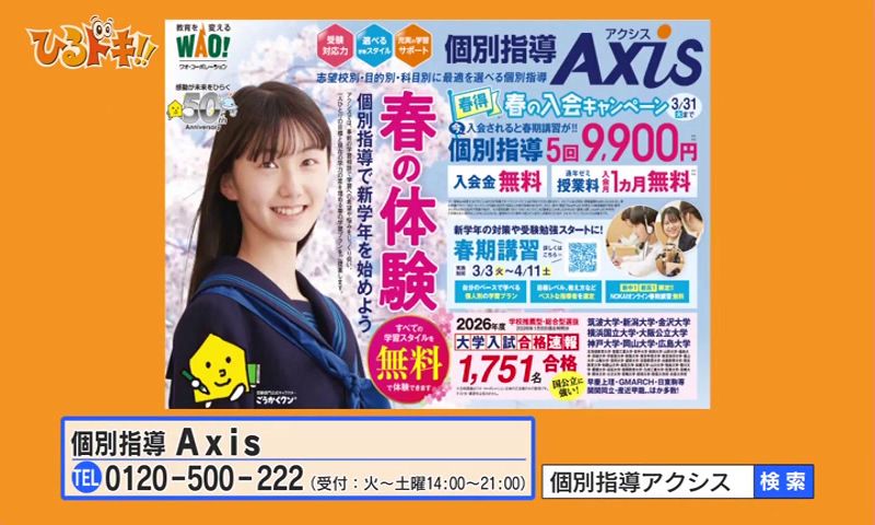 個別指導Axisは「お子さまに最適な学び」を選べます。先生が隣で教える「個別指導」に加え、AIやオンラインなどを組み合わせることができます。長崎県内に10校を展開し各学校の情報も豊富。中学・高校・大学の受験対策に強いのも特長。