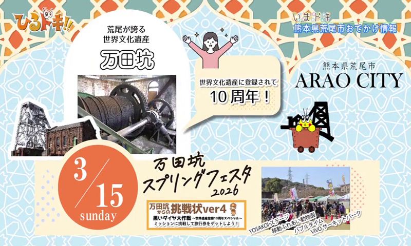世界文化遺産「万田坑」でスプリングフェスタ、特産品・あらお梨の梨園を巡るウォーキングなどのイベントを開催。