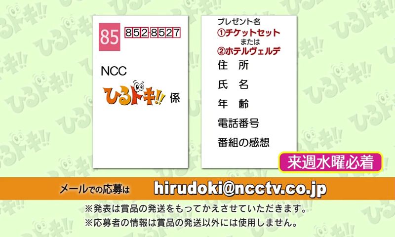 〒852-8527 長崎市茂里町3-2 NCCひるドキ!係