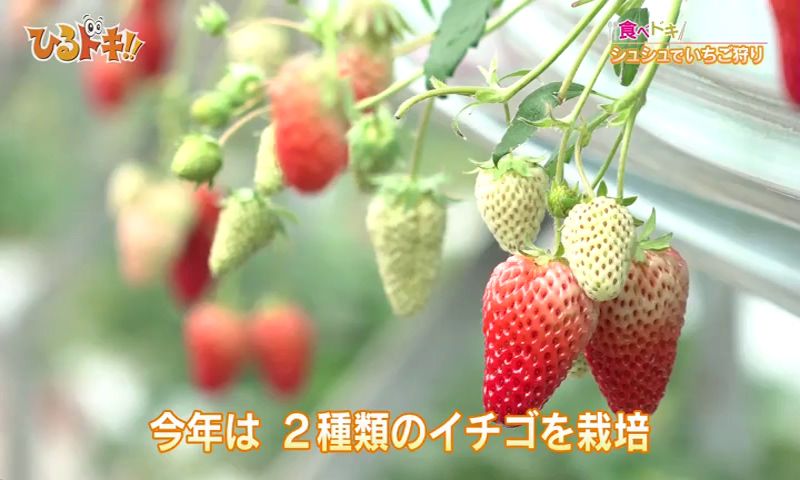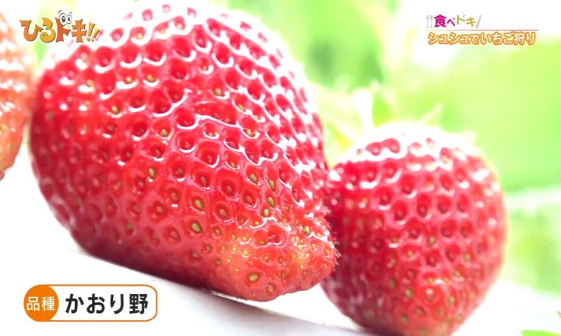 おおむら夢ファーム・シュシュでイチゴ狩りを楽しみました。今年は「かおり野」「紅ほっぺ」の2種類の品種が栽培されています。