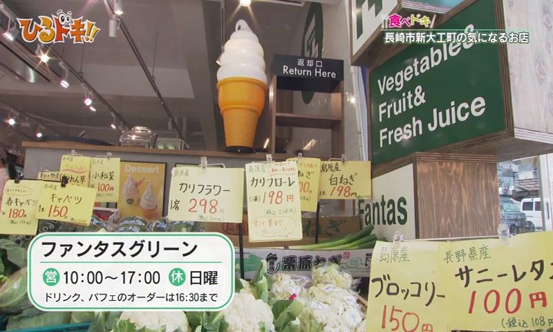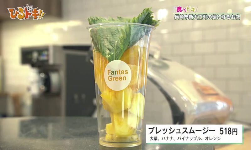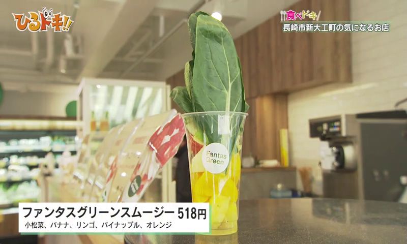 長崎市新大工町にある「ファンタスグリーン」は、島原で採れたものを中心に厳選の野菜や果物が並んでいます。その素材を使ったスムージーやパフェを発見!