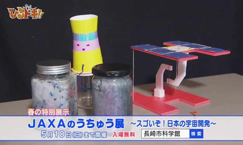 長崎市科学館で開催中!春の特別展示「JAXAのうちゅう展~スゴいぞ!日本の宇宙開発~」へ出かけました。ロケット・人工衛星・探査機の模型や国際宇宙ステーションでの取り組みをわかりやすく紹介。NASAの宇宙服を目の前で見たり、JAXAのブルースーツを試着して記念撮影もできます。期間中は「宇宙」をテーマにした工作体験などイベントも開かれています。