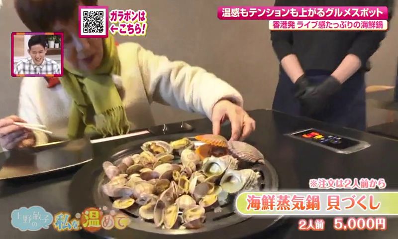 「海鮮蒸気鍋貝づくし」(2人前5,000円)の注文は、2人前から。