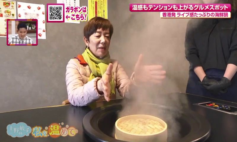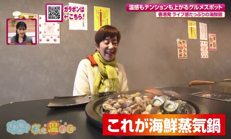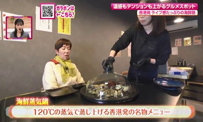 ここは、海鮮蒸気鍋という珍しいメニューのあるお店。注文すると、店員さんが店内の「いけす」から取った新鮮な貝を並べ始めました。