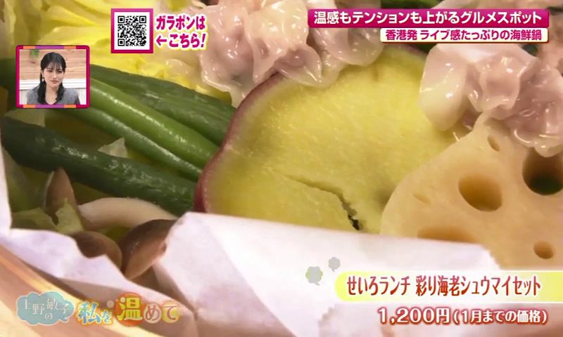 「せいろランチ 彩り海老シュウマイセット」(1,200円 ※1月までの価格)シュウマイのほか、れんこん、サツマイモ、いんげんなど彩り豊かです。