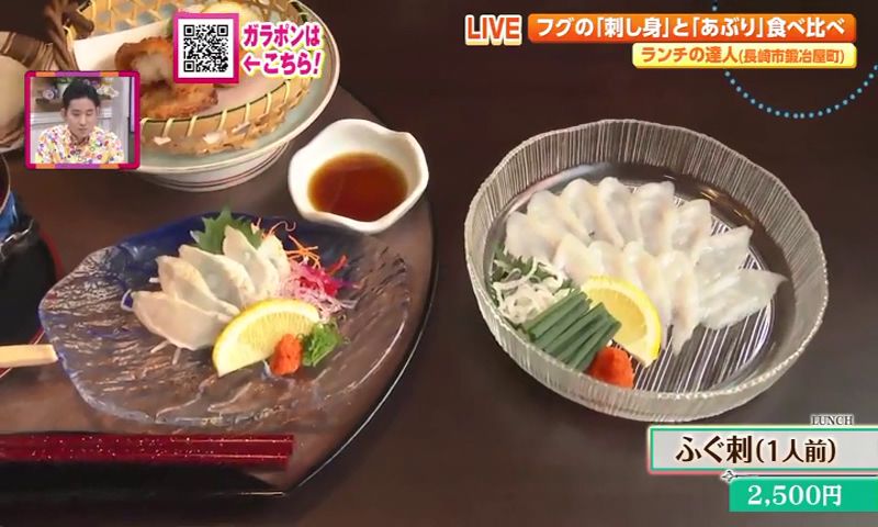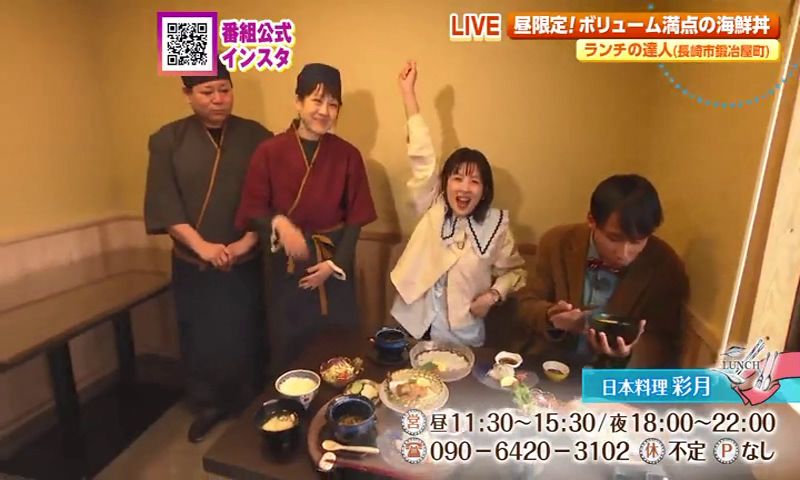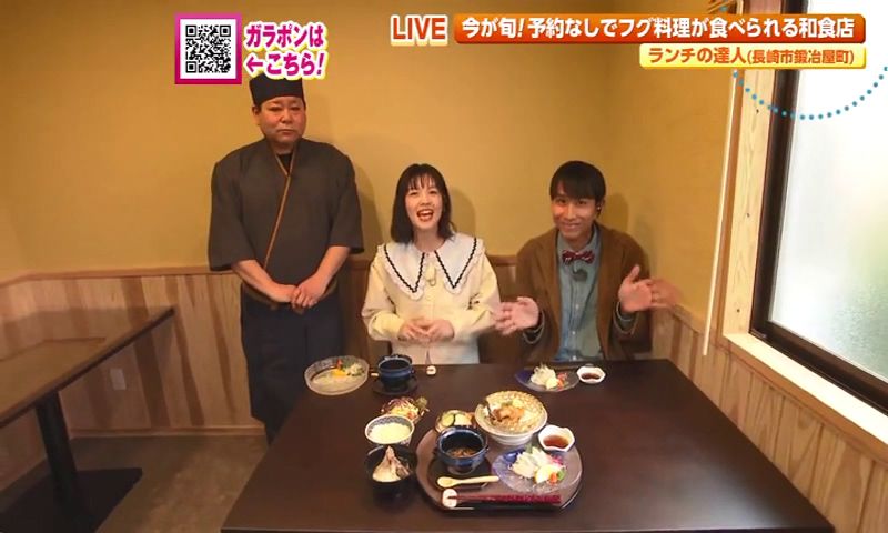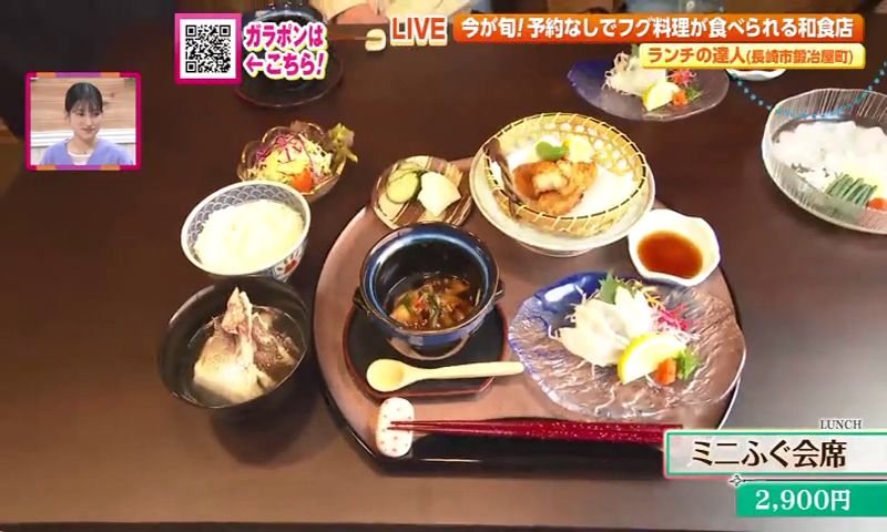 鍛冶屋町の路地裏に昨年オープンしたばかりの 日本料理 彩月。素敵なご夫婦が出迎えてくれました。 日本料理 彩月では、リーズナブルに、しかも予約なしでもフグ料理が楽しめるランチが大人気なんです。今の時期は戸石産のトラフグを仕入れているそう。そのメニューがこちら。 ミニふぐ会席は、なんと2,900円という価格でフグの絶品料理を堪能できます。 フグのタタキ、フグの唐揚げ、フグ白子和風あんかけと贅沢フグ尽くし! なかでも、フグを炙っていただくフグのタタキは特にオススメです。 料理人歴30年以上の店主が華麗にさばく美しいふぐ刺も1人前から注文できます。 タタキとの食べ比べも楽しめそうですね。 フグ料理とともに人気なのが、海鮮丼がついた彩月の昼御膳です。(※お昼限定) 旬の魚を中心に5~7種類の魚を楽しめる海鮮丼にタイのお頭やあら汁もセットになったボリューム満点の御膳もぜひご賞味ください。 日本料理 彩月🐡