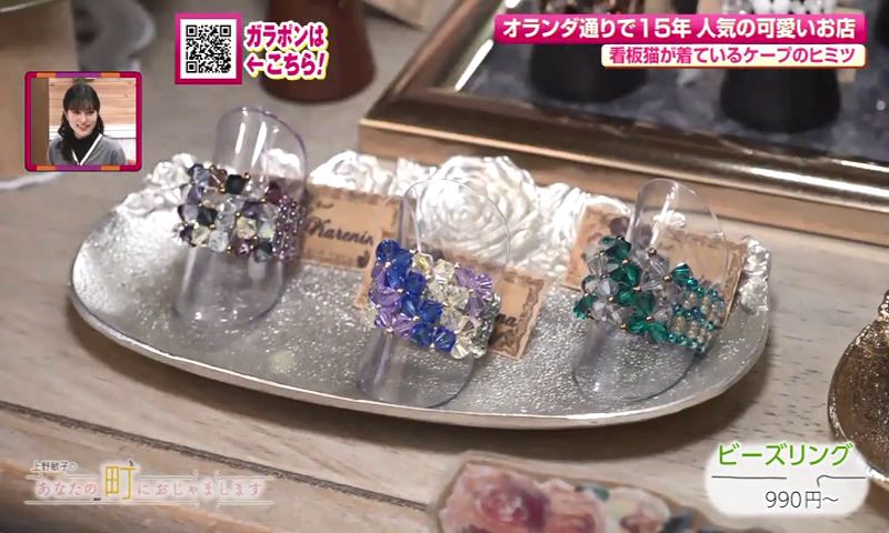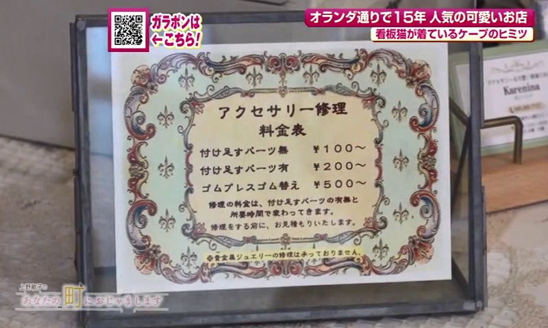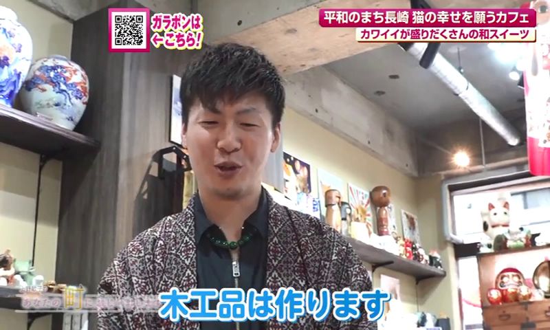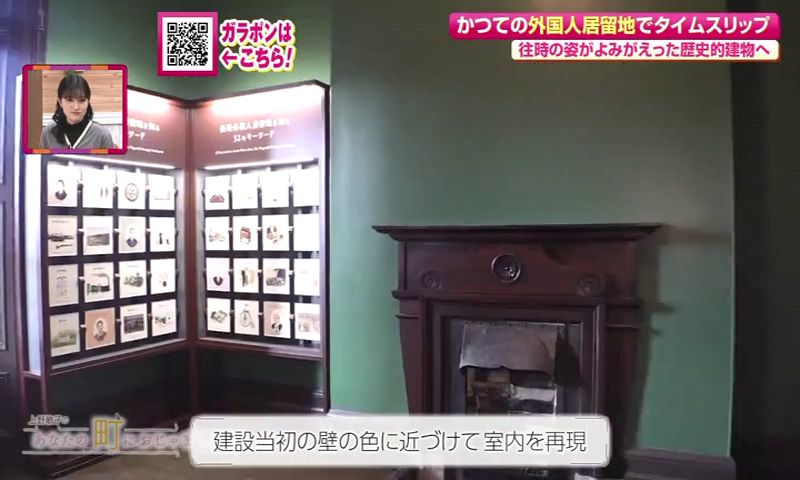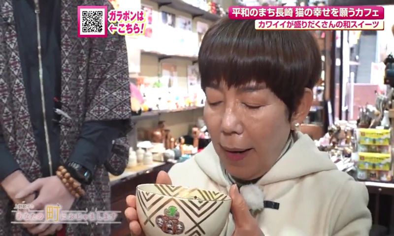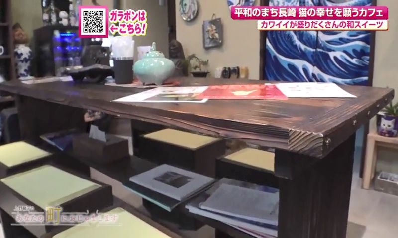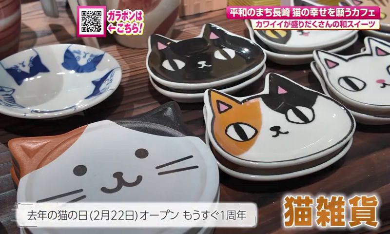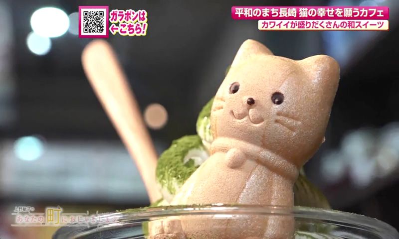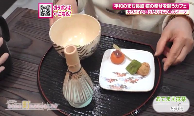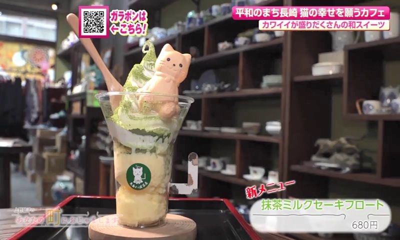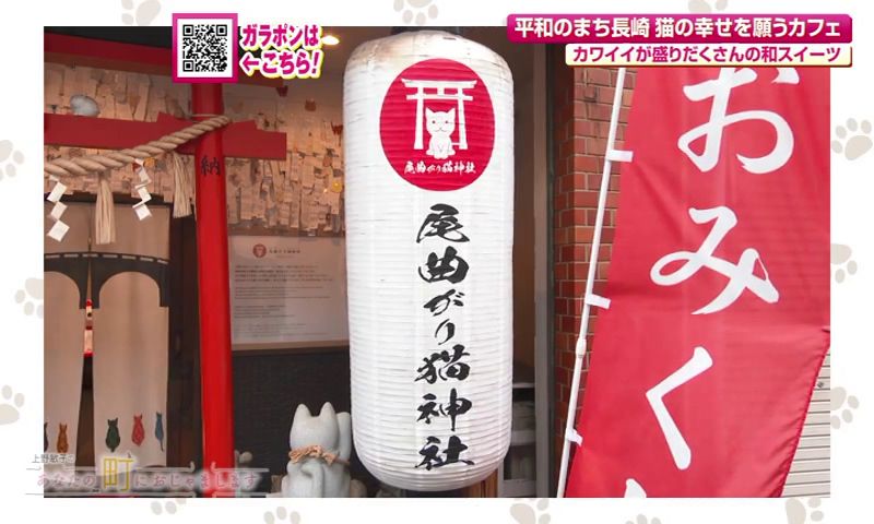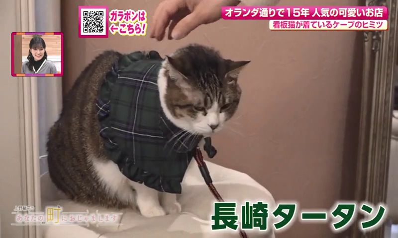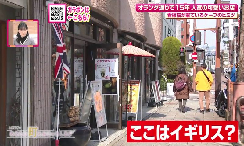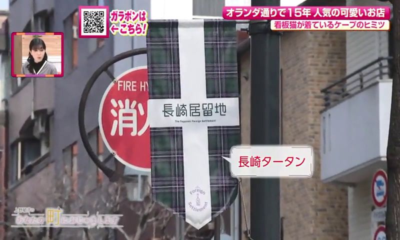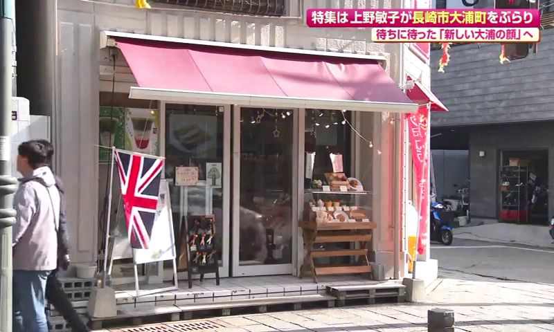 大浦海岸通りには、旧長崎英国領事館があります。 以前は児童科学館など、いろいろな用途に使われていましたが、2015年に保存修理工事が始まり、今年1月30日にリニューアルオープンしました。 大浦町におじゃましたのが、オープンの少し前。ちょうど近隣の方が一足先に中を見学できる日で、上野さんも中へ入ることができました。 建設当初の壁の色に近づけて、室内を再現しています。深い渋いグリーンです。 領事の執務室です。海の見える一番いいところです。 ランプや、タイプライターなど当時の雰囲気が伝わります。 暖炉に使う「火ばさみ」は、当時のものだそうです。 建築やまちづくりの専門家で、元長崎総合科学大学教授の鮫島和夫さんは「本来のかたちに戻されたのは、長崎の宝物」と評価していました。 当時の息遣い、話し声が聞こえそうな気がしました。 旧長崎英国領事館 再びオランダ通りへ ねこのお店を見つけました。「尾曲り猫茶屋」。 有田焼や可愛い猫雑貨が豊富なお店。2025年にゃん・にゃん・にゃんの猫の日(2月22日)にオープンしました。 そのぎ茶の抹茶や、抹茶を使ったスイーツが、人気となっているカフェです。 抹茶を自分で点てる体験型のカフェです。「おてまえ抹茶」(650円)。 オランダ通りでいただく日本の心です。 大人気のパフェも、いただきました。「ひのき香る枡パフェ」(680円)。 猫のもなかが、かわいい。 実は、店長の山下晋太郎さんは、木工好き。店の机や棚を器用に作るアーティストです。そして、動物好き。 そんな店長が作るのは、今年からの新メニュー、ミルクセーキです。「抹茶ミルクセーキフロート」(680円) これも、猫の「もなか」が載ってます。 そんな猫茶屋のもうひとつの顔があります。保護ねこ活動です。 このお店、眼鏡橋の近くにある、尾曲がり猫神社の姉妹店で、どちらも売り上げを保護ねこ活動に役立てています。 店で、家族として迎える猫を探すことができます。 保護猫のパネル写真を並べています。気になる猫がみつかったら保護している団体などと橋渡しをしてくれます。 尾曲り猫茶屋 つづいて、尾曲り猫茶屋の2軒先にある「カレーニナ」へ アクセサリー、洋服、バッグ...トータルコーディネイトができるアイテムをそろえています。 この日は、ゲスト猫ニョーンちゃんがご出勤。 8年前に店に迷い込んできたそうです。飼い主も見つかりませんでした。 長崎独自のタータンチェック 長崎タータンのケープを羽織っています。 長崎タータンは、2019年のラグビーワールドカップの時、スコットランドチームがキャンプで長崎を訪れたことを縁に生まれました。 紫のラインは、あじさいをモチーフにしています。 このタータンが、通りにあるそうです。 長崎居留地を示す通りの旗飾りです。 英国フェアで各店の前にイギリス国旗、そして通りにはランタンフェスティバルの飾りつけ。 再び店内へ。がま口、人気なんですよね。 「がまぐちポーチ」(1,540円~) 「ビーズのリング」(990円~) 代表の財部仁奈さんのお母さんが手作りしています。海外の方にも人気だそうです。 さらに、アクセサリーの修理もしてくれるそうです。100円から。これは、ありがたいですね。 お店で気になっていたセーター。 お買い上げして、スタジオでお披露目しました。 カレーニナ