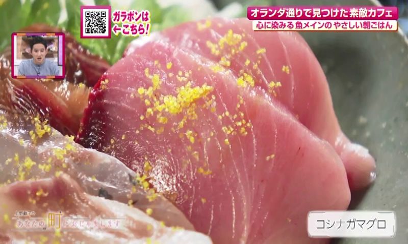 おひたしや煮びたしも添えた、和のテーストたっぷりの朝ごはんです。 味噌汁も具沢山。満足感があります。 魚をメインにしているのは、子どもさんが魚が好きだから。料理で魚の魅力を伝えたいと考えているそうです。 ちなみにランチメニューは、海鮮丼(1,870円)。やはり、魚メインです。魚の種類のよって、漬けの方法を変えたりと、美味しく食べられる工夫をしています。 中村さんは、食品のバイヤーをしていた経験があります。 詳しいのは、魚だけではありません。米は、島原の生産農家から仕入れています。甘みがあります。 オランダ通り周辺では、2月23日まで英国フェアをしていて、イギリスにちなんだ商品を出しています。 セメカフェでは、タラのフリッターを挟んだフィッシュバーガーがいただけます。「フィッシュバーガー&チップス」(1,320円) S'AIMER cafe