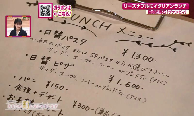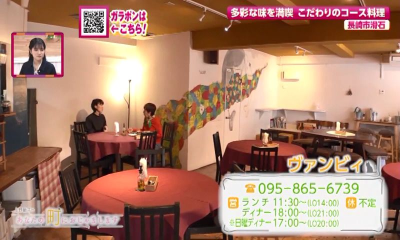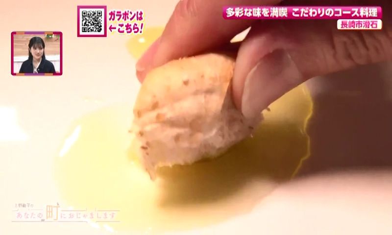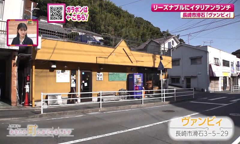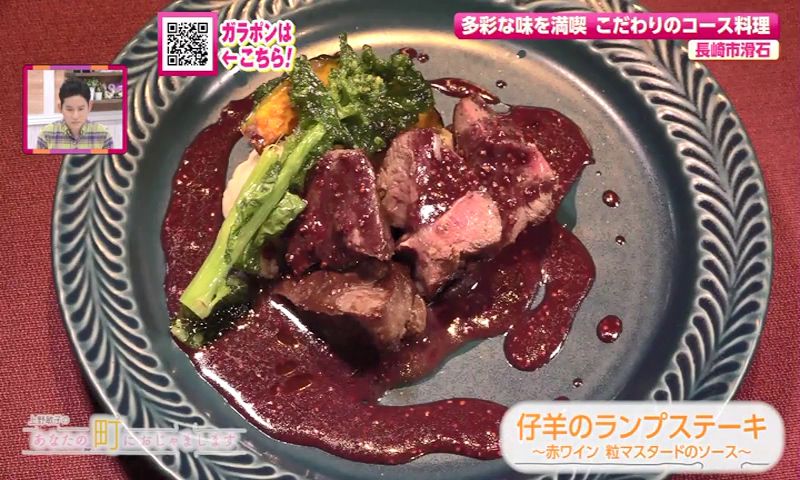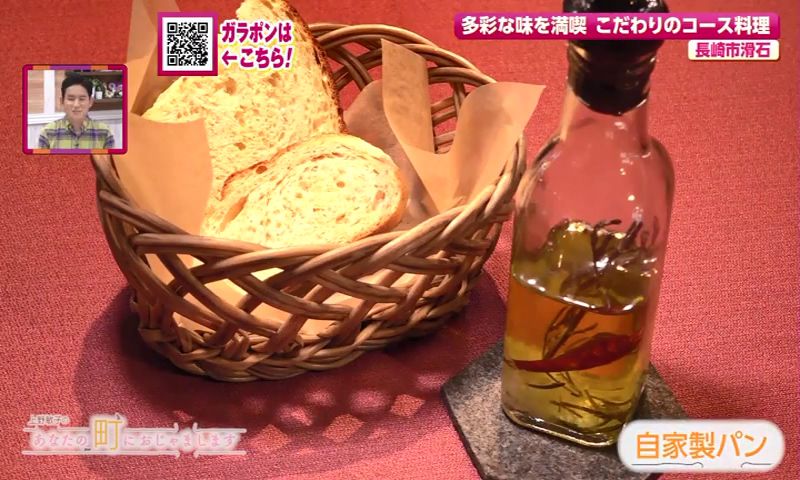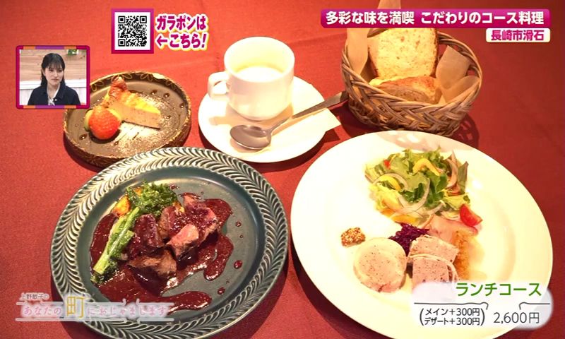ランチは、「日替わりパスタ」(1,300円)、「日替わりピザ」(1,600円)のほか、オードブル、スープ、パン、メインのランチコース(2,000円)があります。 メインは、数種類から一つ選ぶスタイルです。 杉村さんが、おススメしてくれたのが、「仔羊のランプステーキ」(+300円)。 料理を作るのは店長の三村さんです。 福岡のイタリアンとフレンチのお店で修業。3年前からここ「ヴァンビィ」で腕を振るっています。 「自分がつくりたい料理を、作りたい味で出している感じで、こだわりっていうより、自分が好きなものをお出ししているていう感じですね」 そんな三村店長が手がけるランチコース(2000円+メイン300円+デザート300円)がこちら。お昼から豪華な料理になりました。 メインの「仔羊のランプステーキ(赤ワイン 粒マスタードのソース)」。ボリュームのあるお肉は、とても柔らかくて美味しい。 上野さんが、どハマりしたのが自家製パン。料理のソースをつけてもおいしいんですが、オススメは「オリーブオイル」です。 オリーブオイルには、イタリア産の岩塩とローズマリー、唐辛子を加えています。さわやかな風味です。 この日のデザートは、「バスクチーズケーキ」でした。 地元で愛される、ゆったりとしたランチを楽しむのにいいお店です。 ヴァンビィ 続いては長崎らしいあるものが見られるという神社へお邪魔しました。 滑石太神宮は、1660年に創建。366年の歴史がある由緒深い神社です。 初詣や七五三など多くの人が訪れる地元に親しまれている場所。そんな滑石太神宮で出会ったのは... 竜踊(じゃおどり)の竜でした。