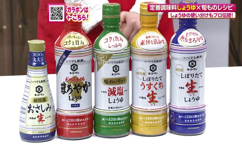 毎日の食卓に欠かせない”しょうゆ”。甘口、薄口、刺身じょうゆなど、その種類はさまざま。それぞれ特徴が違うので、使い分けることでレシピの幅が広がるんです。