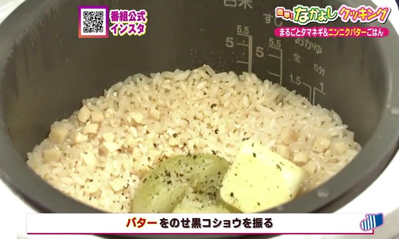 ② 炊き上がったらバターをのせ、黒コショウを振ったら完成!