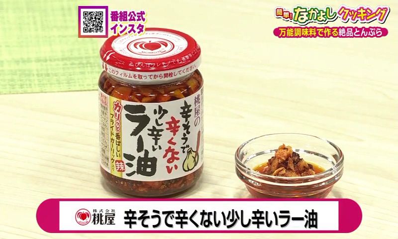 そのままでもおいしい『とんぷら』ですが、桃屋の「辛そうで辛くない少し辛いラー油」をのせて味変もオススメ!ぜひお試しください♪