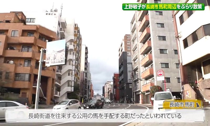 長崎市馬町は、諏訪神社の門前に位置し、かつて長崎街道を往来する公用の馬を手配する町だったことから、その名前がつけられたそうです。