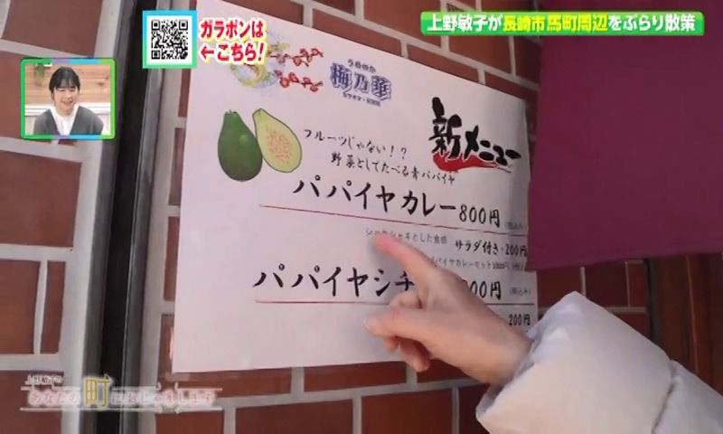 表面に張られているのは、スクラッチタイルです。 改修工事をしていますが、そこかしこに当時の面影を残しています。 現在は、ボランティアセンターとして市民の活動をサポートする施設になっています。 長崎市市民活動センター ランタナ お昼時です。 ランタナのはす向かいに気になるお店を見つけました。 メニューを書いたボードに「パパイヤカレー」の文字が... 「梅乃華」。居酒屋と書いてありますがお昼も営業していました。 夕方6時からはカラオケ居酒屋をしているそうです。 店主の瀧川ヨシ子さんは、川口町の浦上百貨センターで、たこ焼き・お好み焼き・お弁当の店をしていたそうです。 去年1月に浦上百貨センターを退去して、2月に梅乃華をオープンしました。諏訪神社のおひざ元で仕事をしたくて、馬町に店を出したそうです。 お客さんから長崎で育てたパパイヤをもらったことがきっかけで、料理に使うようになったそうです。 抗酸化作用や美容にも良いとされる青パパイヤ。自身が、パパイヤカレーでダイエットにも成功したということで、ヨシ子さんイチ推しの野菜になっています。 「パパイヤカレー」(800円)です。ジャガイモみたいごろっとしているのが、パパイヤです。クセがなく、トゥルンと溶けかかったところがまた美味しいそうです。 片栗粉をうすく付けて揚げた「パパイヤチップス」(500円)。歯ごたえがよく、パパイヤの甘みを感じます。 「パパイヤサラダ」(300円)も加わり、パパイヤ尽くしです。料理の仕方でおどろくほど味が変わります。 ヨシ子さんが、食べてほしいとすすめてくれたのが、「パパイヤシチュー」(800円)。 柔らかく煮込んだ県産の牛肉も入っています。パパイヤは、口に入れた瞬間、冬瓜のような食感ですが、食べるとじゃがいもに近い風味を感じました。 梅乃華(うめのか) お隣の大井手町(おおいでまち)の方に足を延ばしてみました 。 「武具タイラ」。 看板の上に、剣道の面がかわいくデザインされています。 剣道で身につける防具や竹刀などをオーダーメイドできる専門店でした。 世界大会で優勝するような剣士たちもこちらでオーダーした防具を使っているそうです。 店主の多比良始郎さんは、この道およそ50年。剣士が使いやすい防具が作れないか、日々考えています。 お店オリジナルの防具。「かたつむり小手」は、動きやすさと衝撃吸収力を両立させています。 輪島漆塗りの「胴」を見せてもらいました。竹を80本編み込んでいます。もはや芸術品です。 竹刀を握ると、筋(すじ)が良いと褒められました。 上野さんの構えを見て、多比良さんからは「強そうよ気が」というお言葉も... 多比良さんは今年年男72歳になります。剣士のために使いやすい道具をつくることで、頭がいっぱいだそうです。 武具タイラ 電車通りにやってきました。 「公会堂ロジック」というビル。 ビルの端っこに小さな入口を発見!人が一人通れそうな細い階段の先に、お店があります 。 「fu(ふう)」。去年11月1日にオープンしました。 編み物と古着のお店です。 4坪ほどの小さなスペースにおしゃれな古着と可愛らしい編み物が並んでいます。 「自分のお店をいつか持ちたいと思っていた」と話す店主の愛さん。いい物件がみつかったと、25歳で夢を叶えました。 商品の編み物は、すべて愛さんが編んだものです。 2,3年前に編み物を始め、去年から売り始めたそうです。 お店番をしつつ新作も作ります。国内外から可愛い糸を仕入れて作品を作っていくのが楽しいそうです。帽子が人気で、たくさん展示しています。手編みの帽子(2,800円~) ボンネットという形が人気だそうです。 耳まで覆われるので温かそうです。 国内外から取り寄せた古着も愛さんのセンスが光るものばかり。古着や編み物に惹かれて、幅広いお客さんが来るようです。 女性のお客さんが多いそうですが、若い男性がくることもあるそうです。 今年はがんばりたいと言う愛さん。ずっといたくなるようなお店でした。 編み物と古着のお店 fu
