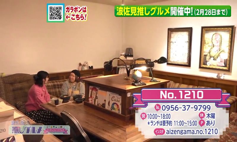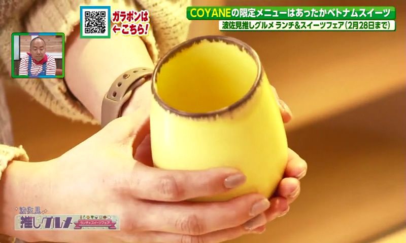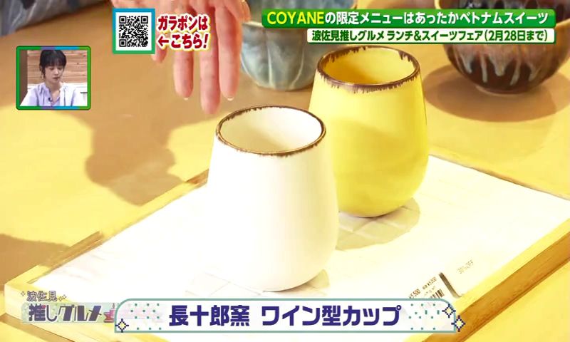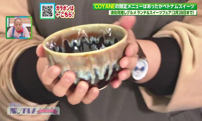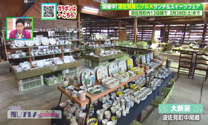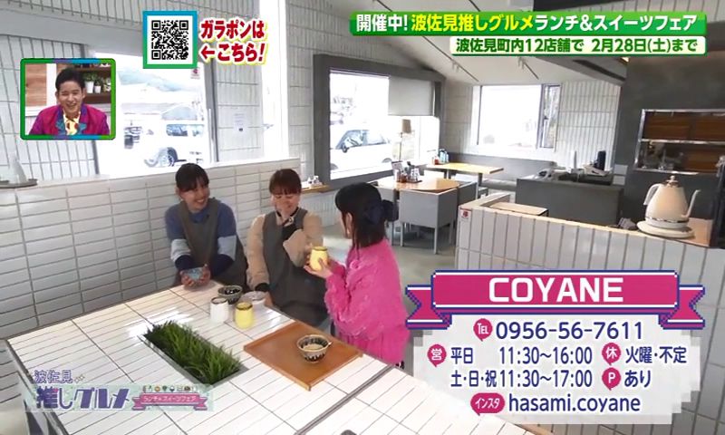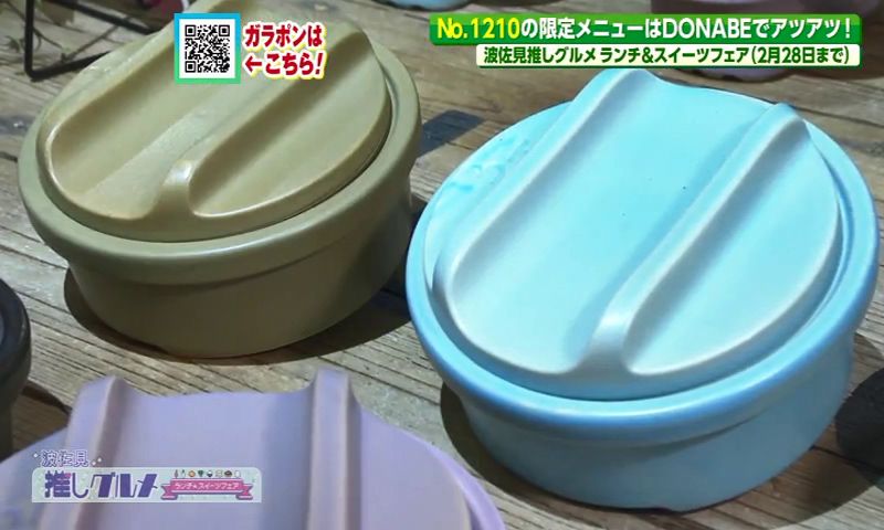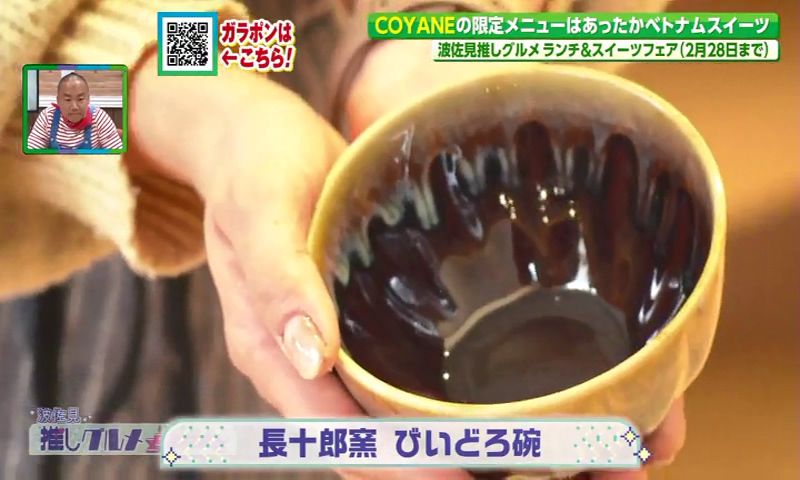 「ÔYANE(オーヤネ)」という波佐見焼のギャラリーに併設されているから「コヤネ」です。 地元のものや カラダに優しい食材を使うのがお店のコンセプトです。 今回の“推しグルメ”は、フォーではなく、スイーツです。 「ココナッツコーヒー&ホットチェ―セット」(1,100円)。 ホットチェ―は、タピオカと緑豆を使ったベトナムの伝統的な甘味で、日本のぜんざいのようなものです。 白玉には、波佐見産の米粉を使っています。日本風にしようとかぼちゃのペーストも。ベトナムと日本、そして波佐見のコラボです。 かき混ぜてからお食べください。 タピオカと緑豆を煮込んだ餡がやさしい味わい。ココナッツの風味があとから追いかけてきます。とっても温まります。 ココナッツコーヒーは、ココナッツミルクと練乳が入っていて、ホッと一息 やさしい甘さです。 波佐見焼を使うのが グルメフェアのルール。KOYANEでは、長十郎窯の器を使っています。 ほっこりした手触りも楽しい器です。サイズ感もよく、持ちやすい。 この器は 隣の「オーヤネ」で買うことができます。 オーヤネは、様々な窯元の商品を卸している商社・西海陶器(さいかいとうき)のギャラリー兼ショップです。 推しグルメに使われていた器のひとつ、長十郎窯の「びいどろ碗」。流れるような釉薬が特長で、スープや抹茶碗など様々な用途で使えます。 ココナッツコーヒーが入っていた「長十郎窯ワイン型カップ」。 もともとワインカップを想定して作られたものですが、お茶やお酒の香りを楽しむのもよさそうです。 COYANE 続いては、和のテイストが入った洋食が人気のカフェレストラン「ダイニングカフェるらん」です。 こちらも地元の食材を活かしたメニューを提供しています。一番人気は レモンステーキ丼。 野田麻由美さんと義信さん夫婦が温かく迎えてくれるお店です。 グルメフェアへの参加は 6回目です。今回は「冬野菜の和風ガパオライス」(1,400円)。 和風のスパイス、生姜や柚子胡椒、一味唐辛子、山椒を使い、しょうゆや出汁も使っている「和風」のガパオライスです。 細かく刻んだレンコン・ニンジン・ダイコン・タマネギ。食材も和風です。 最初にやさしい鶏肉のうまみ、後からホットなスパイシーさを感じます。 「ガパオライスと呼んでいいかが不安」と野田さん夫婦。 ガパオいえば、はい、卵も必須。和風なので「温泉卵」をのせています。 口の中の刺激をまろやかにしてくれました。 るらんが使っているのは、大新窯(おおしんがま)のお皿です。 スプーンが皿の縁にあたって、すくいやすいところがポイントです。 大新窯は、陶芸の里・中尾山にあります。 ガパオライスを盛り付けていたのは、「ギアシリーズ」というプレートでした。 ギア(歯車)のように嚙み合うデザインです。 洋食の飲食店からの注文が多いそうです。最近は、北海道、そして福岡のカレー店から立て続けに注文があったそうです。 「るらんさんで、見て来ました」というお客さんもいるそうです。 ランチを食べて、 器を買いに窯元へ… いい流れです。 ダイニングカフェるらん 3軒目は県道1号、佐賀県嬉野に続く道沿いです。 「ナンバー1210(いち・にぃ・いちぜろ)」というカフェ。 波佐見町湯無田郷1210番。1210はお店の住所から。 波佐見焼の窯元 藍染窯(あいぜんがま)直営のショップ兼カフェです。 グルメフェア 初参加です。 調理を担当するのは、山田悠さん。 バンズ、ソースを手作りするハンバーガーや、 米粉ドーナツがお店の看板メニューです。 推しグルメはアツアツメニュー。 「DONABEでアツアツ ハンバーグドリアランチ」(1,500円)です。 分厚いハンバーグがドーンと、チーズもたっぷり。 波佐見産のお米をターメリックで炊きあげ、米粉のホワイトソースをかけています。 添えているのは、自家製黒ゴマパン。明太ソースをかけています。 クリーミーなホワイトソースが、ガツンとしたハンバーグととてもよくマッチしています。 ホワイトソースとチーズをこれだけたっぷり使っていながら、くどさがありません。 直営ショップですから、器はもちろん藍染窯のものです。「ハイム土鍋スキレット ソロ」。直火オーケー、耐熱の土鍋(どなべ)です。 作ったのは 、吉田萌生さん。企画から営業、作陶まで何でもこなします。 アウトドア用の調理器具を作ろうと思ったのが、ハイムのはじまりだそうです。 土鍋を小さくしただけでなくて、厚みにこだわって、蓄熱性能を上げました。また、ダッチオーブンのように蓋の上に薪を置いたり、焚き火台の上で回転させたりとキャンプシーンでの使い方を想定してデザインしています。 長崎窯業技術センターとの共同開発です。 ハイキングでも家(ホーム)でも使えるから「ハイ」+「ム」と名付けたそうです。蓋をひっくり返して、肉を焼くこともできます。焼く・炊く・煮込む・蒸す・燻す、ひとつで何通りにも使えます。 No.1210のアツアツドリアランチは事前に予約が必要です。 No.1210 「