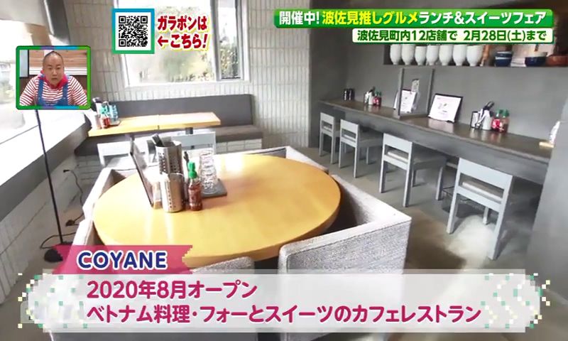 まずは 県道1号添いの 「COYANE(コヤネ)」。ベトナム料理のフォーを楽しめるカフェレストランです。