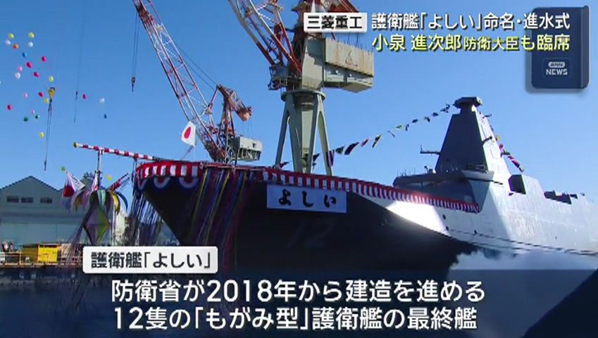 三菱重工長崎造船所で新型護衛艦「よしい」の命名・進水式がありました。