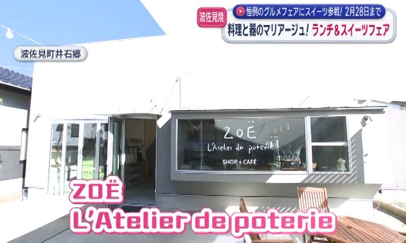 やきもの公園そばの「ZOЁ L’Atelier de poterie(ゾエ ラトリエ ドゥ ポトゥリー)」。窯元・一誠陶器の直営店で、アウトレット品の陶器を割引価格で販売するほか、ほっと一息つけるカフェも併設しています。