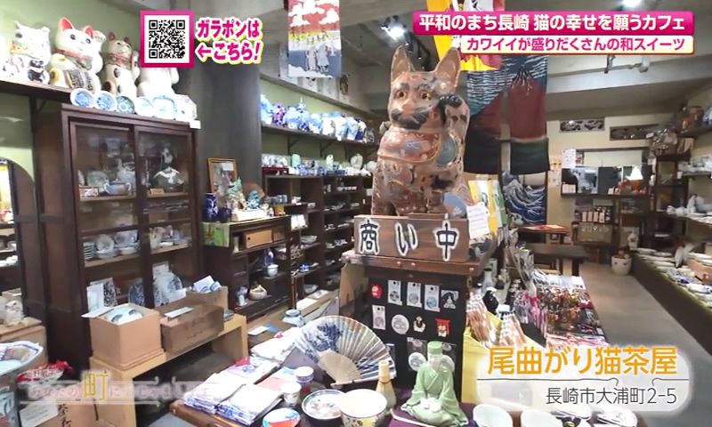 長崎市大浦町、商店街「オランダ通り」に2025年2月22日“猫の日”にオープンした「尾曲がり猫茶屋」。猫好きにはたまらない、雑貨とスイーツが楽しめるカフェです。店名の由来は、長崎に多いとされる尾曲がり猫。しっぽがカギ状の「曲がりしっぽ」は、「幸せの扉を開ける」「幸運を引っかけてくれる」開運イメージで人気があります。