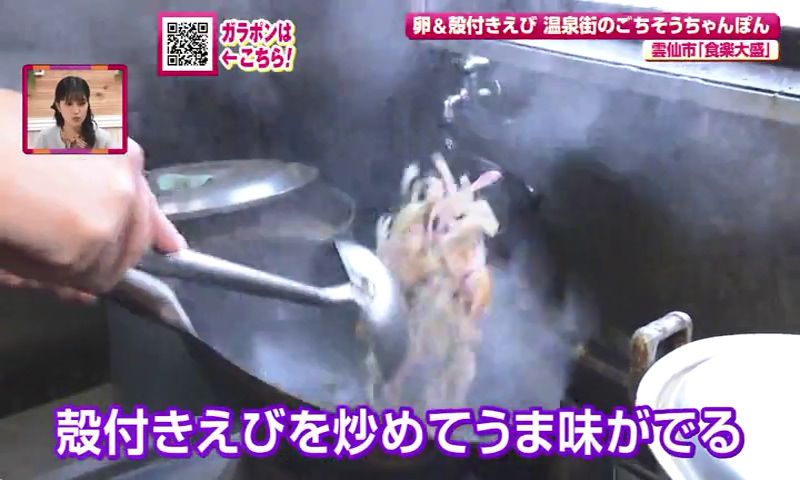 創業約60年の老舗「食楽大盛」は、小浜ちゃんぽんの本場で地元に愛され続ける人気店。看板メニューの「小浜ちゃんぽん(卵入り・950円)」は、殻付き海老が最大の魅力。小浜の漁師町ならではの鮮度へのこだわりから、獲れたての海老を殻付きのまま使う伝統を守っています。