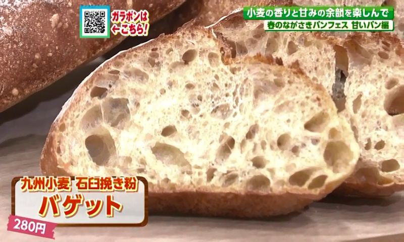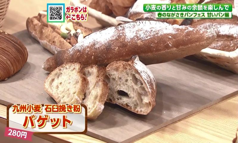 店主・浦馬場康洋さんが「粉のおいしさを感じてもらうならコレ」とすすめるのは、石うすで挽いた九州産小麦を使った「バゲット」(280円)。ゆっくり噛みしめることで、小麦本来の香りや甘みの違いがしっかり感じられる、シンプルながらも奥深い味わいです。