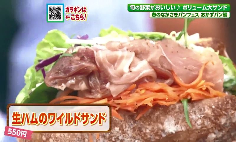 もうひとつ注目なのがサンドイッチ。特に「生ハムのワイルドサンド」(550円)は、レタスや水菜など県内産の旬の野菜を5~6種類も使ったボリューム満点の一品。季節ごとに直売所で仕入れる野菜を活かし、どんなパンを作るか考えるというこだわりも魅力です。