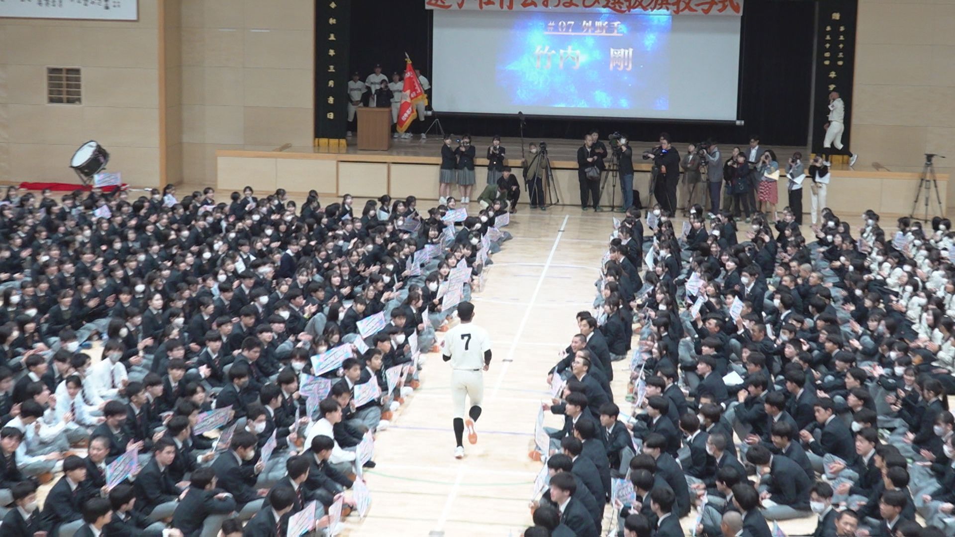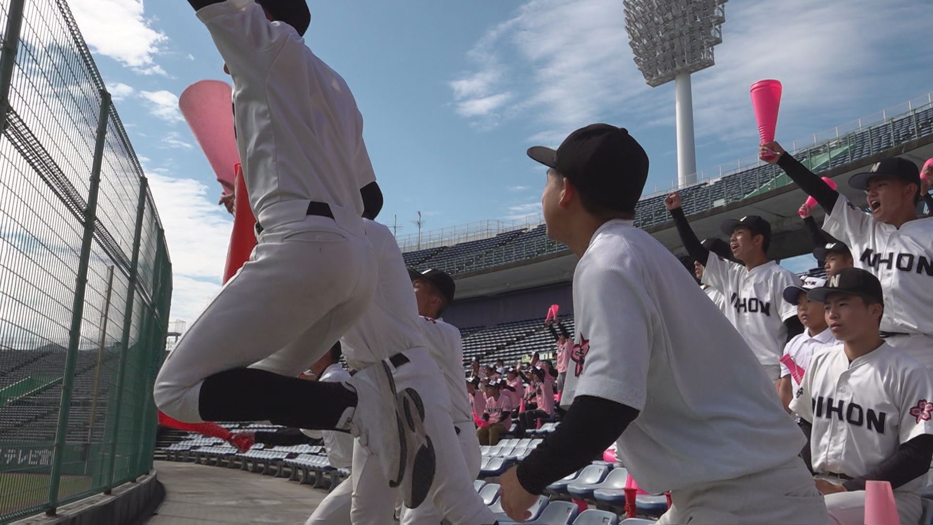 快進撃の影の立役者となったのが、一番大きなメガホンで一番大きな声援を送った竹内剛選手です。甲子園への思いを声に込め、チームに何度も流れを呼び込みました。スタンドから甲子園への思いをつないだ竹内選手に、半年間の密着取材です。 去年夏、竹内選手は1学年上の代からライトでスタメン。実力は折り紙つきの外野手でしたが、新チームになってすぐ、秋の県大会で試合中に右肩を脱臼。自身にとってもチームにとっても大きな痛手となる負傷でしたが、心強い仲間がいました。 勝てば九州大会出場が決まる準決勝。竹内選手に代わって、出場したのが鶴山虎士選手。初スタメンとなった大一番で、2HR・4打点の大活躍。主力の不在を救うヒーローになりました。 鶴山選手は九州大会でも5割近い打率を残し、選抜出場に大きく貢献しました。 そして、甲子園出場が決まった翌日。慎重にキャッチボールをする竹内選手の姿がありました。 まだ全力では投げられず、短い距離で動きを確かめます。と言っても、開幕まで残り1カ月半。スタメン争いもより熾烈になっていきます。 長崎日大・平山清一郎監督: 竹内選手に追い風となったのが長崎西の存在です。正捕手の石川選手は、長崎北リトルシニアで中学時代のチームメイト。バッテリーも組んでいました。 長崎西2年石川瑛空選手: そして、今月4日の壮行会。ユニホーム姿の竹内選手の背中には、背番号「7」。対外試合解禁日の練習試合には、鶴山選手とそろってスタメン出場。 竹内選手の守るレフトへの打球も、ワンバンでの送球になりましたが、しっかりとさばきました。 チームのためにできることを尽くした九州大会から、半年。心身ともに強くなって、帰ってきた背番号7として、甲子園に挑みます。 長崎日大2年竹内剛選手: