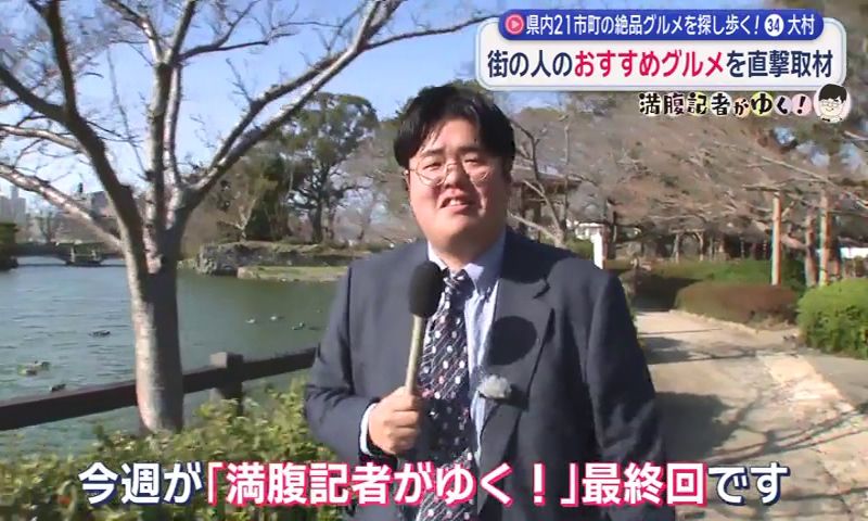 長崎の絶品グルメを探し歩いた「満腹記者がゆく」も、ついに最終回。春の人事異動で企画が終了することとなり、満腹記者・中嶋航大(32)がラストロケの地に選んだのは、自身が生まれ育った大村市。思い出深い大村で、街頭聞き込みからグルメを探します。
