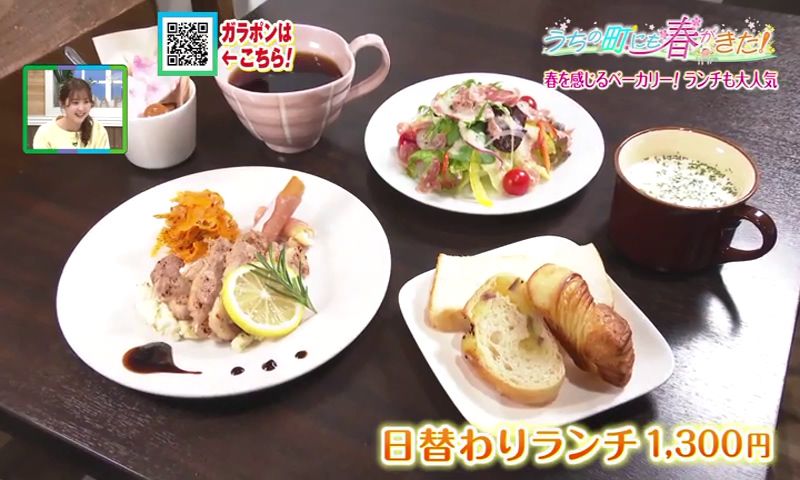 イートインスペースは4席ほど。人気の「日替わりランチ」(1,300円)は、メイン料理とスープが日替わりで、取材日は「豚ロースのレモンとハーブのソテー」と「コーンとタマネギのポタージュ」。野菜もたっぷりで、パンはなんと3回まで無料でおかわりOK。パン好きにはたまらないサービスです。