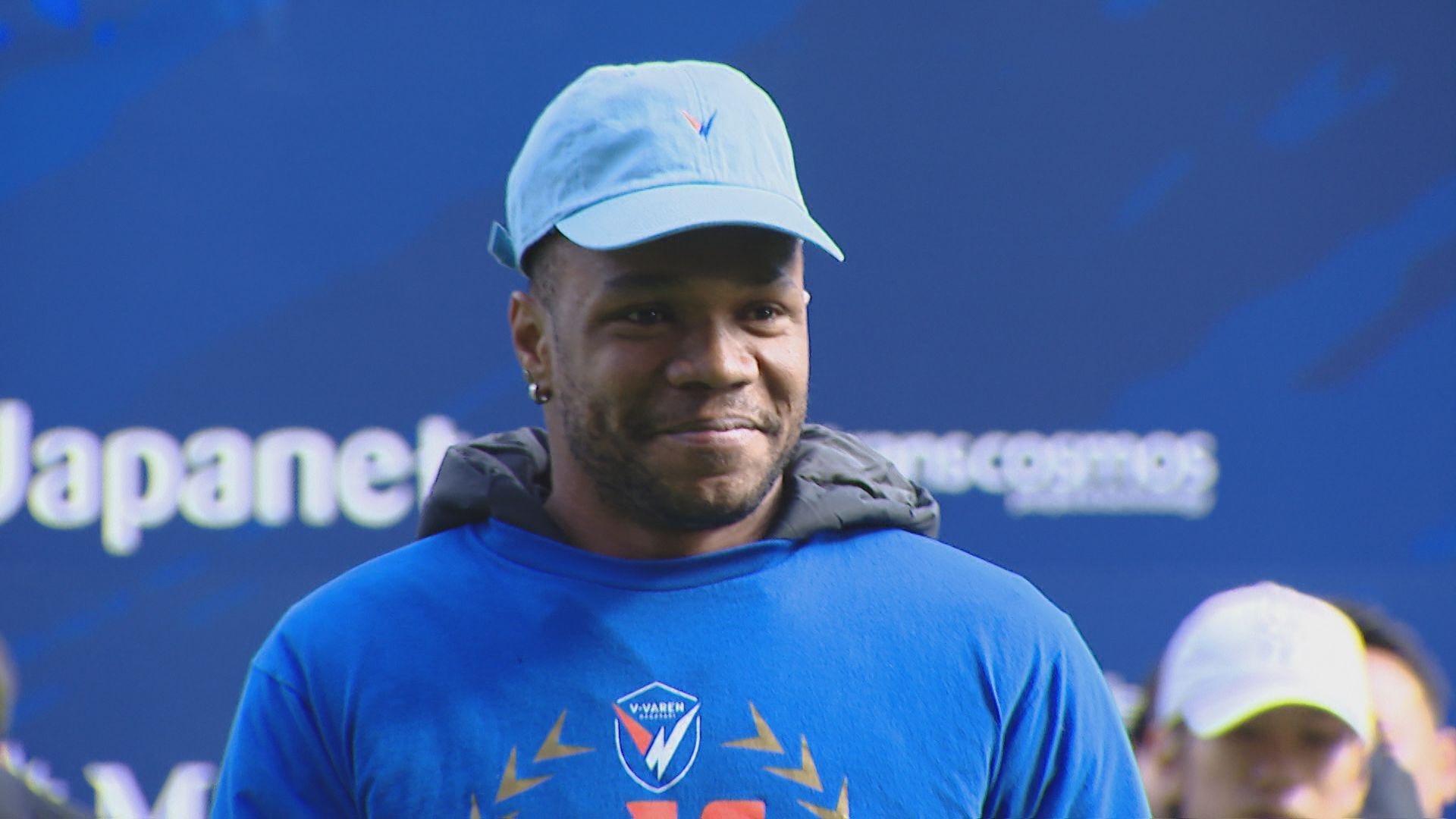 ピーススタジアムで行われた記者会見には、9人の選手が登場しました。注目は、2022年にJ1リーグ得点王に輝いた、ブラジル出身のチアゴ・サンタナ選手(32)です。