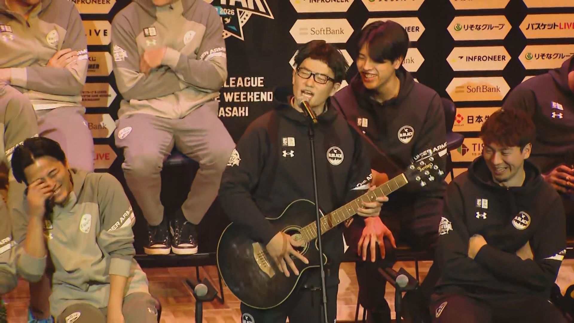 千葉ジェッツ・渡邊雄太選手の公約は…「チャンポンシュート」。 群馬クレインサンダーズの辻直人選手は、さだまさしさんになりきって「関白宣言」ならぬ『開幕宣言』を披露しました。 午後4時55分からはハピネスアリーナでアジアクロストーナメントが行われ、長崎ヴェルカからは、スタンリー・ジョンソン選手や狩俣昌也選手らが出場しました。 17日(土)は午後4時半から、千葉ジェッツの富樫勇樹選手らが参加するスキルチャレンジやレバンガ北海道の富永啓生選手が出場する3ポイントコンテスト、豪快なダンクコンテストが行われます。 去年千葉で開かれたオールスターゲームでは、2日間で約1万9000人が観戦し、12億8000万円の経済波及効果がありました。期間中、市内各地に無料体験ブースなどが設けられ、長崎は3日間、バスケットボール一色に染まります。