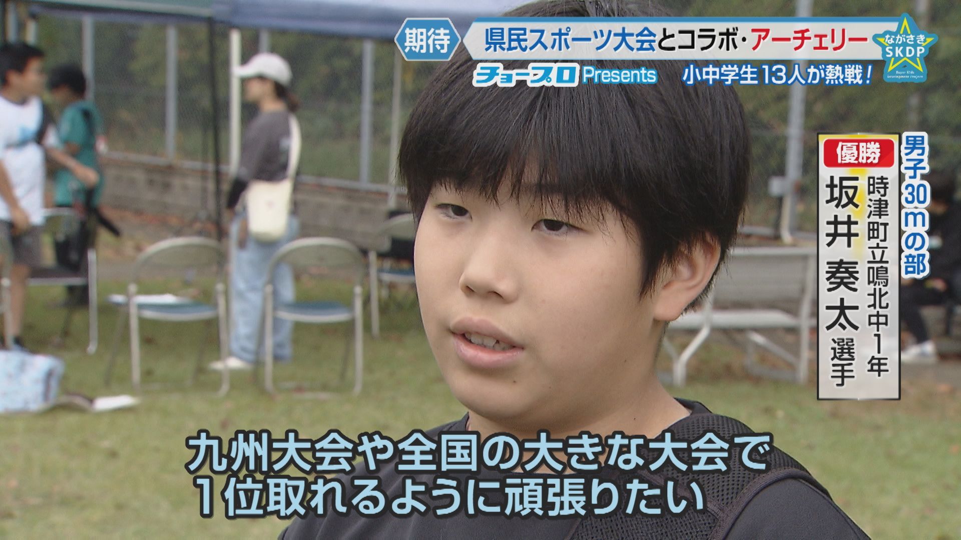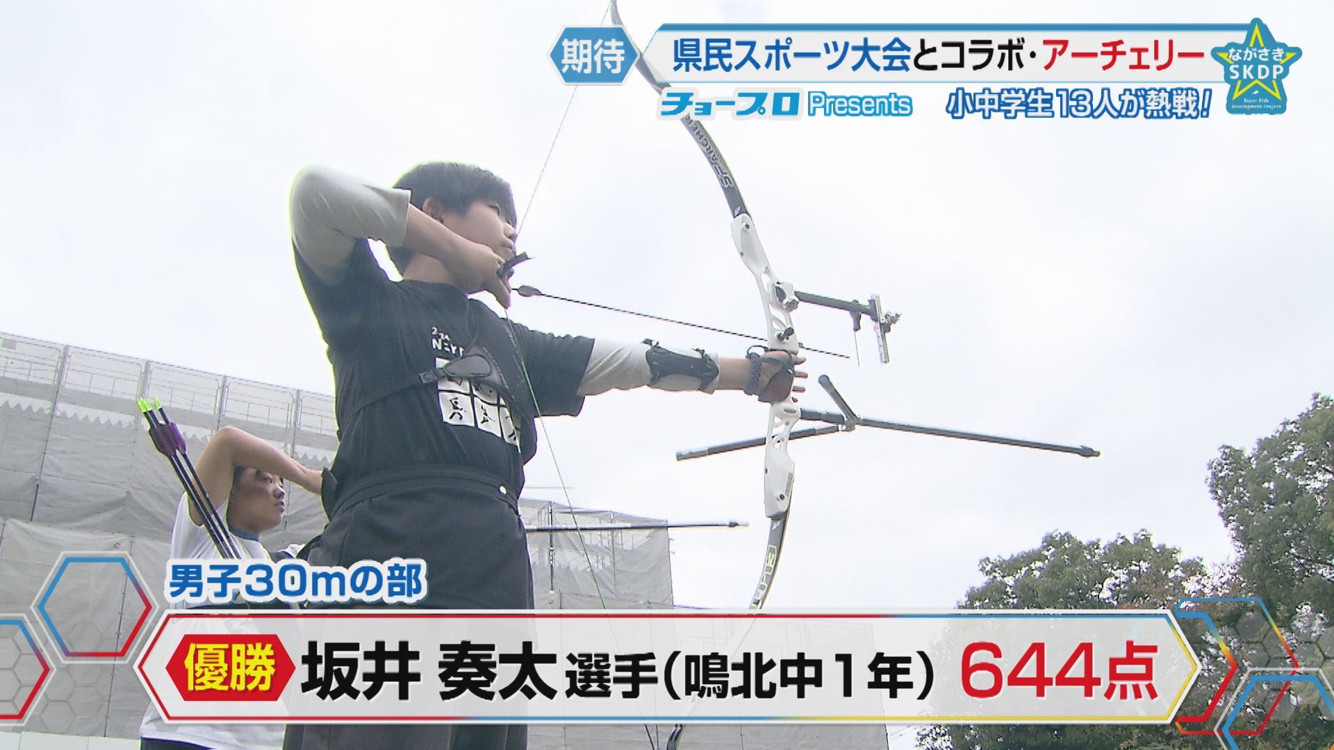 男子の注目は、30mの部に出場した時津町立鳴北中学校1年の坂井奏太選手。安定したフォームから高得点を挙げ、優勝しました。