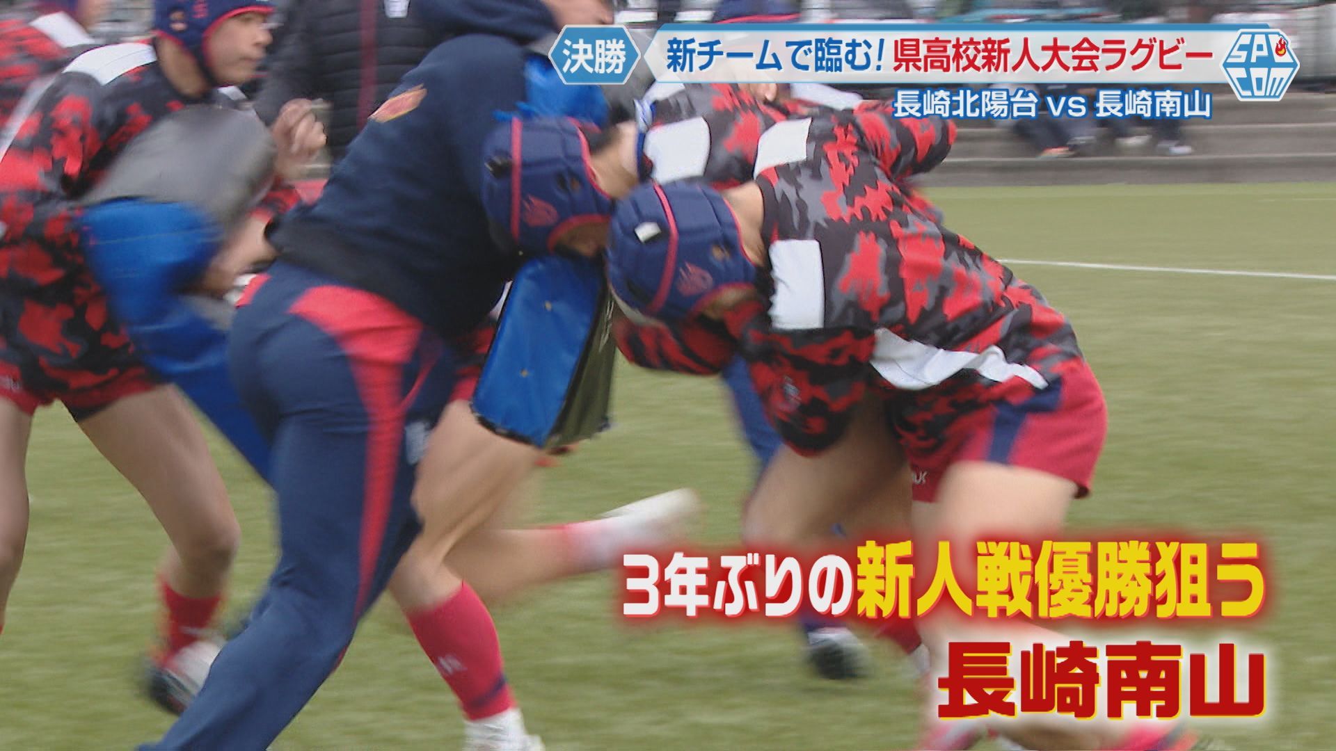 新チームで挑む最初の大会、県高校ラグビーの新人戦の決勝が大村市で行われ、去年の新人戦で準優勝、花園でベスト16の青のジャージー長崎北陽台と、3年ぶりの新人戦優勝を目指す赤のジャージー長崎南山が対戦。
