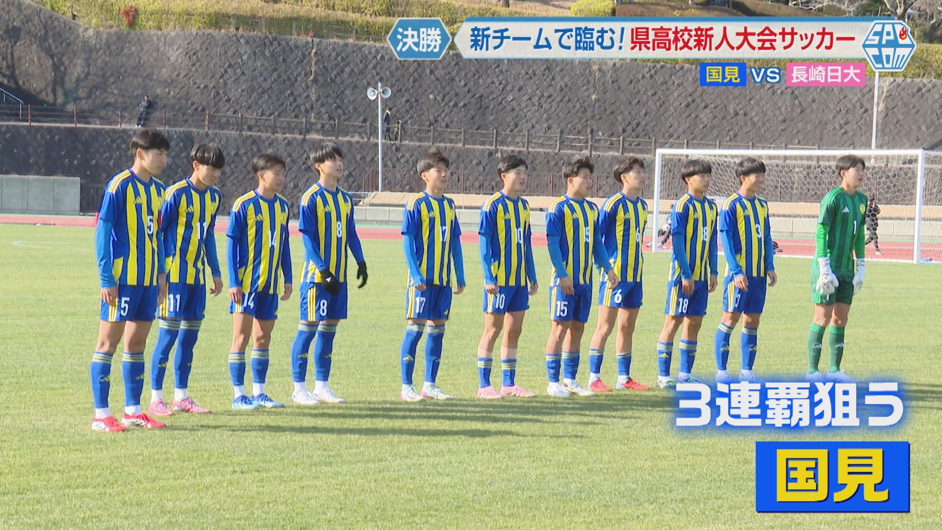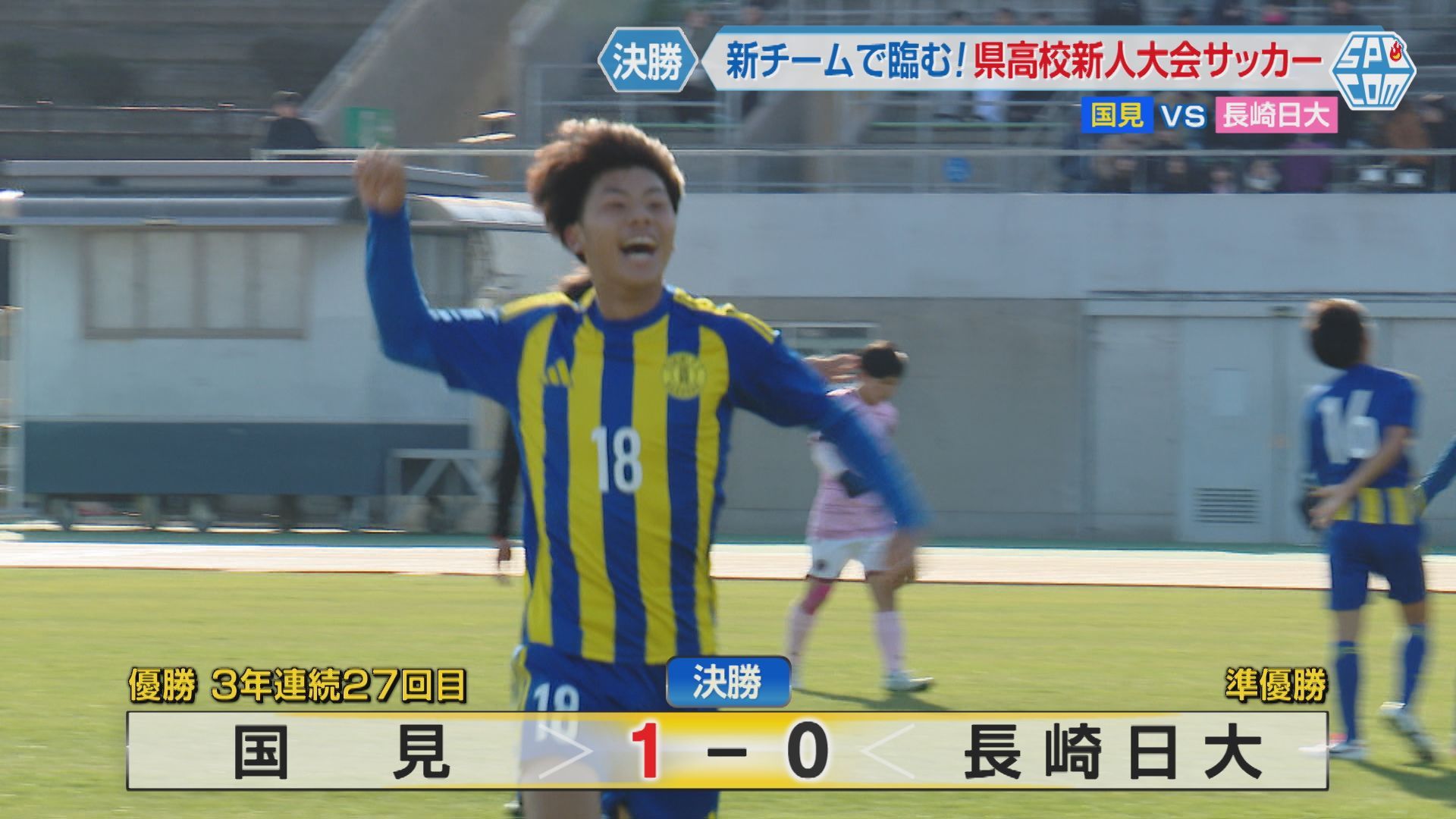 1、2年生の新チームで臨む県高校サッカーの新人大会が島原市で開かれました。男子は、各地区を勝ち抜いた24チームが出場。決勝はノーシードから勝ち上がり、3連覇を狙う国見と、3年ぶりの優勝を目指す長崎日大が対戦しました。