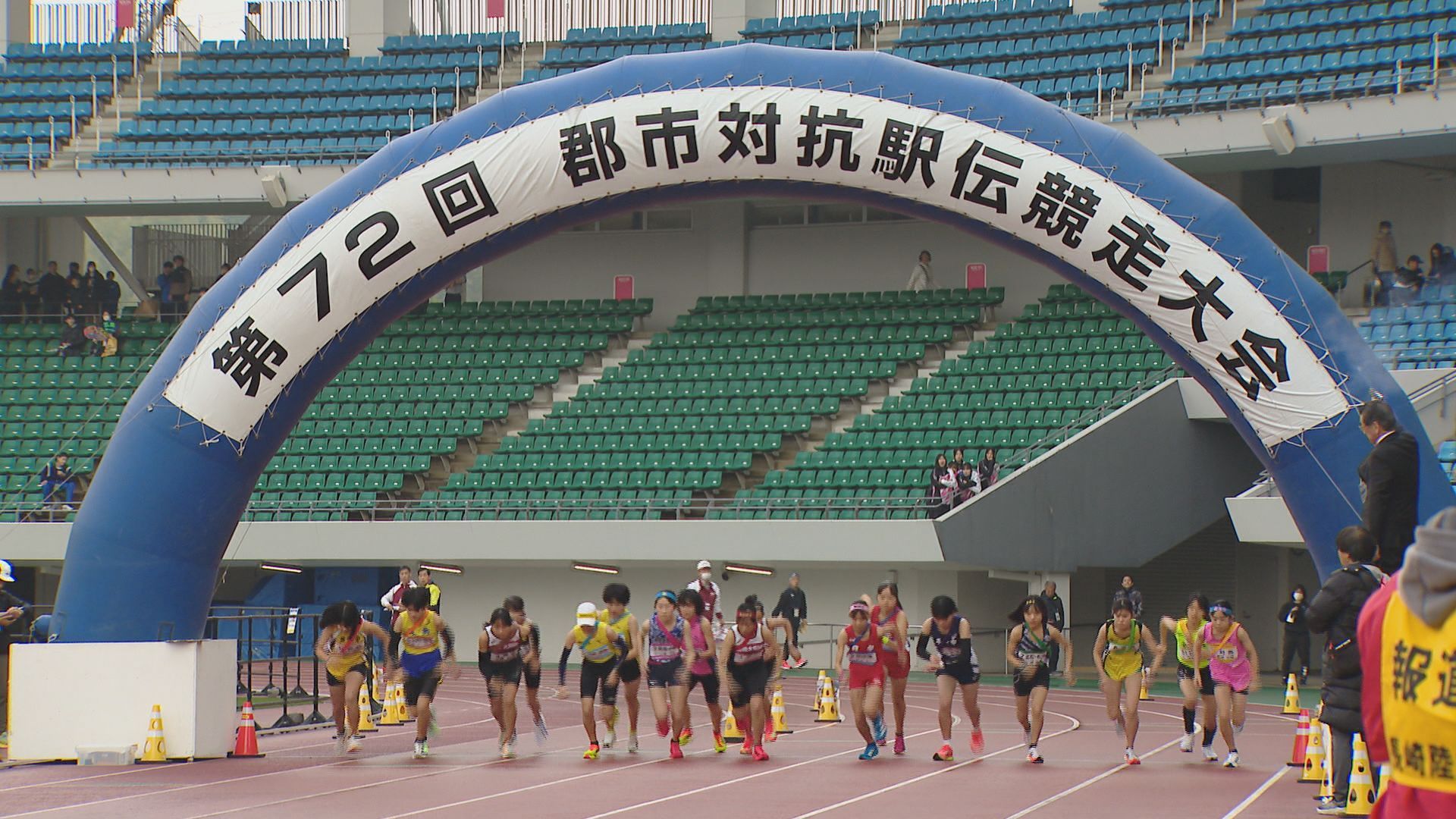 第72回郡市対抗駅伝大会が諫早市のトラスタ長崎周回コースで行われました。11郡市の代表が出場し、女子6区間、男子9区間の計15区間で争われました。