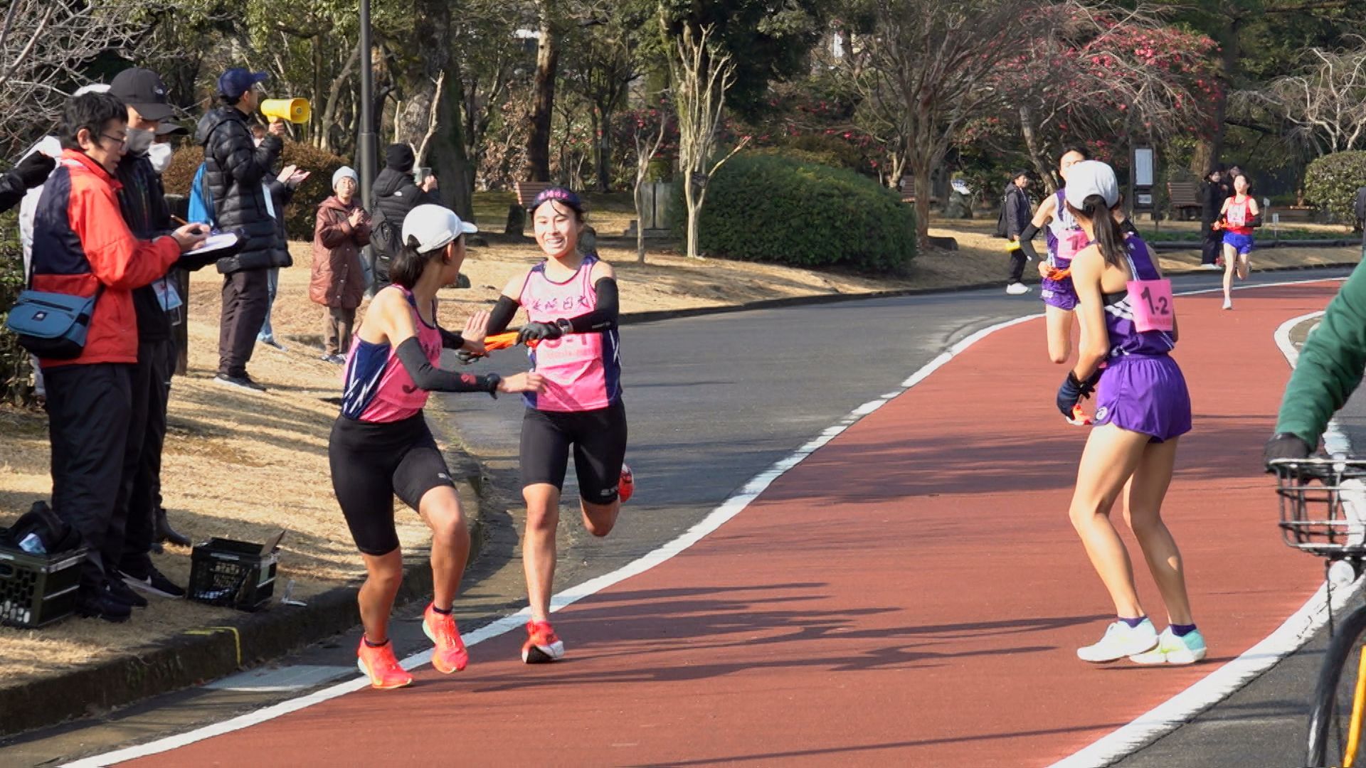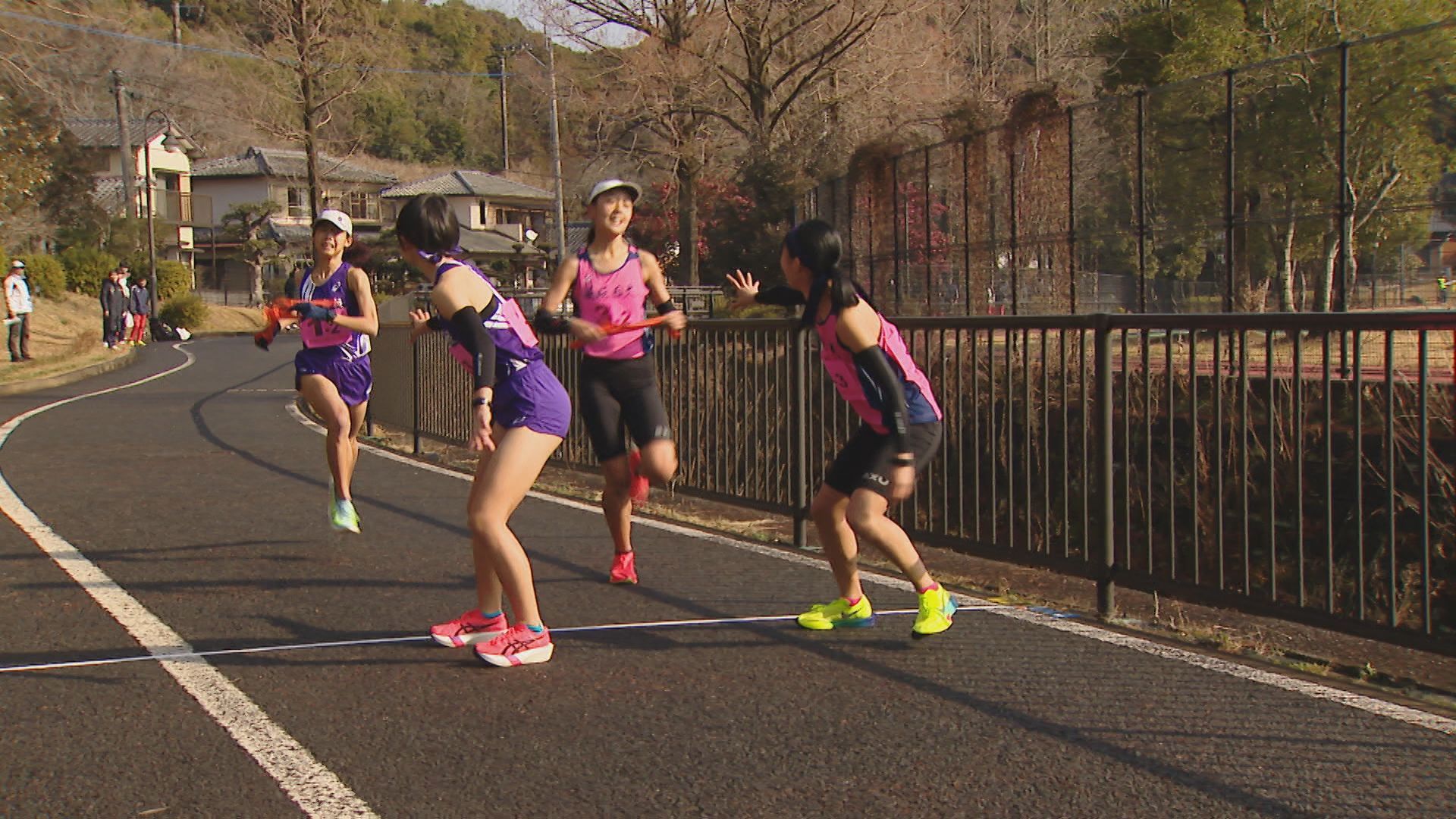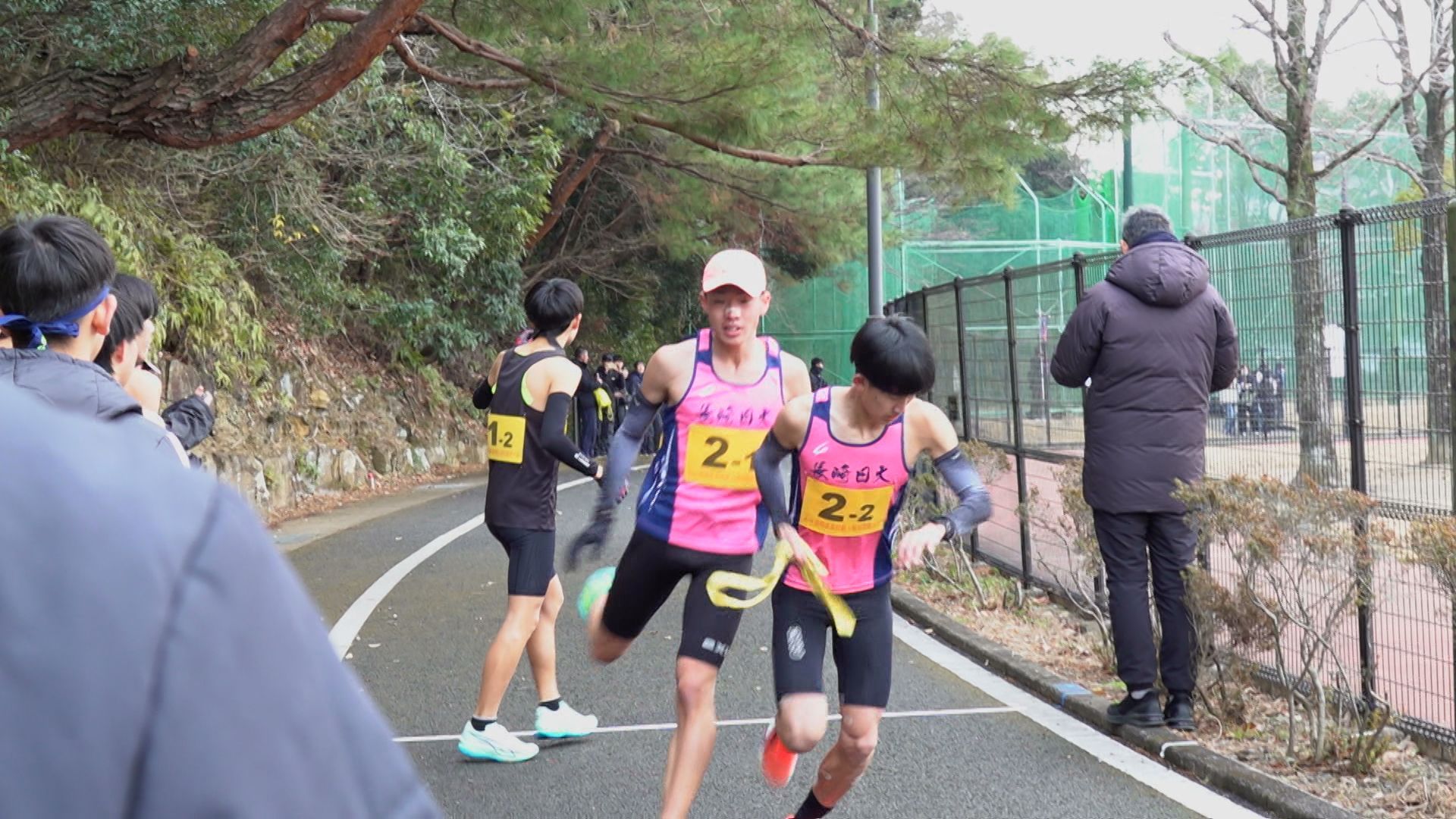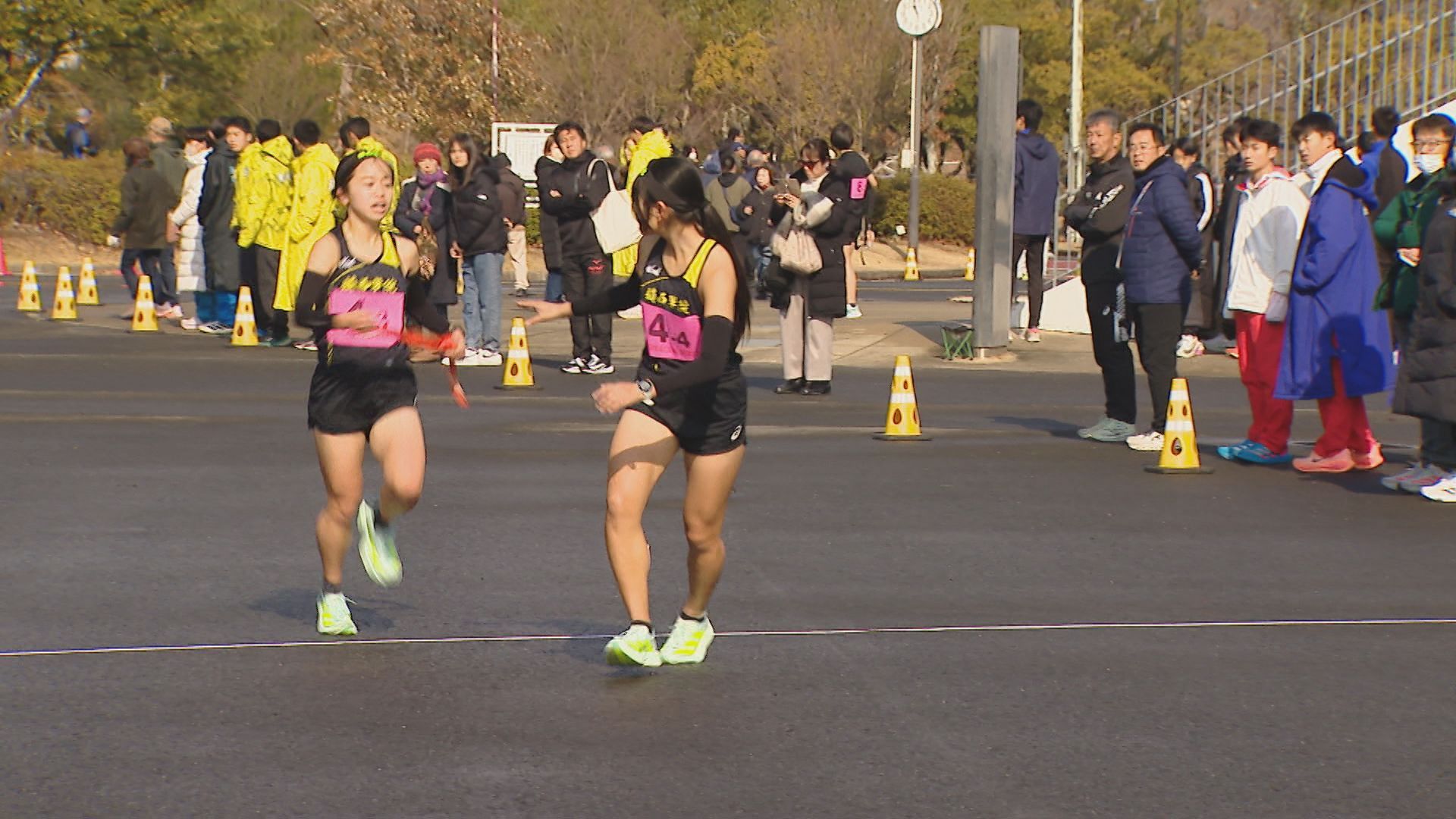 3キロの1区。去年、都大路に出場した諫早は1年生ながらアンカーを務めた中村が、先頭でレースを展開します。中継所に先頭でやって来たのは、長崎日大の安永。6連覇中の諫早に先行して、たすきをつなぎます。諫早の中村は3秒差の2位です。 2区から3区は、長崎日大が諫早にわずかにリードして中継。 3区、4区と先頭が入れ替わるなど、デッドヒートの中、鎮西学院も追い上げてきます。5区・3キロのアンカーへ。3チームが8秒以内にひしめき、3校どこが勝ってもおかしくない展開に。 1位でトラックに帰ってきたのは…王者・諫早。2年生の吉田が落ち着いたレース運びで後続を振り切り、トップでゴールし、7連覇達成。 続いて、追い上げた鎮西学院が10秒差の2位。長崎日大は、惜しくも3位となりました。 一方、26校が出場した男子は、1区間減り、5区間24キロで争います。 優勝を狙う長崎日大は1区でエース・俵が区間賞を獲得。3連覇中の鎮西学院・濵が3秒差で続きます。 2区では、長崎日大、鎮西学院、ほぼ同時で中継。 そして、最長区間8キロの3区。鎮西学院の百田が、圧倒的な走りを見せます。去年の都大路では、直前の体調不良でメンバー変更となった新エース候補が、24分02秒と、長崎日大に40秒差をつける区間賞で逆転します。 4区、そしてアンカーの5区でも鎮西学院が区間賞をとり、勝負あり。