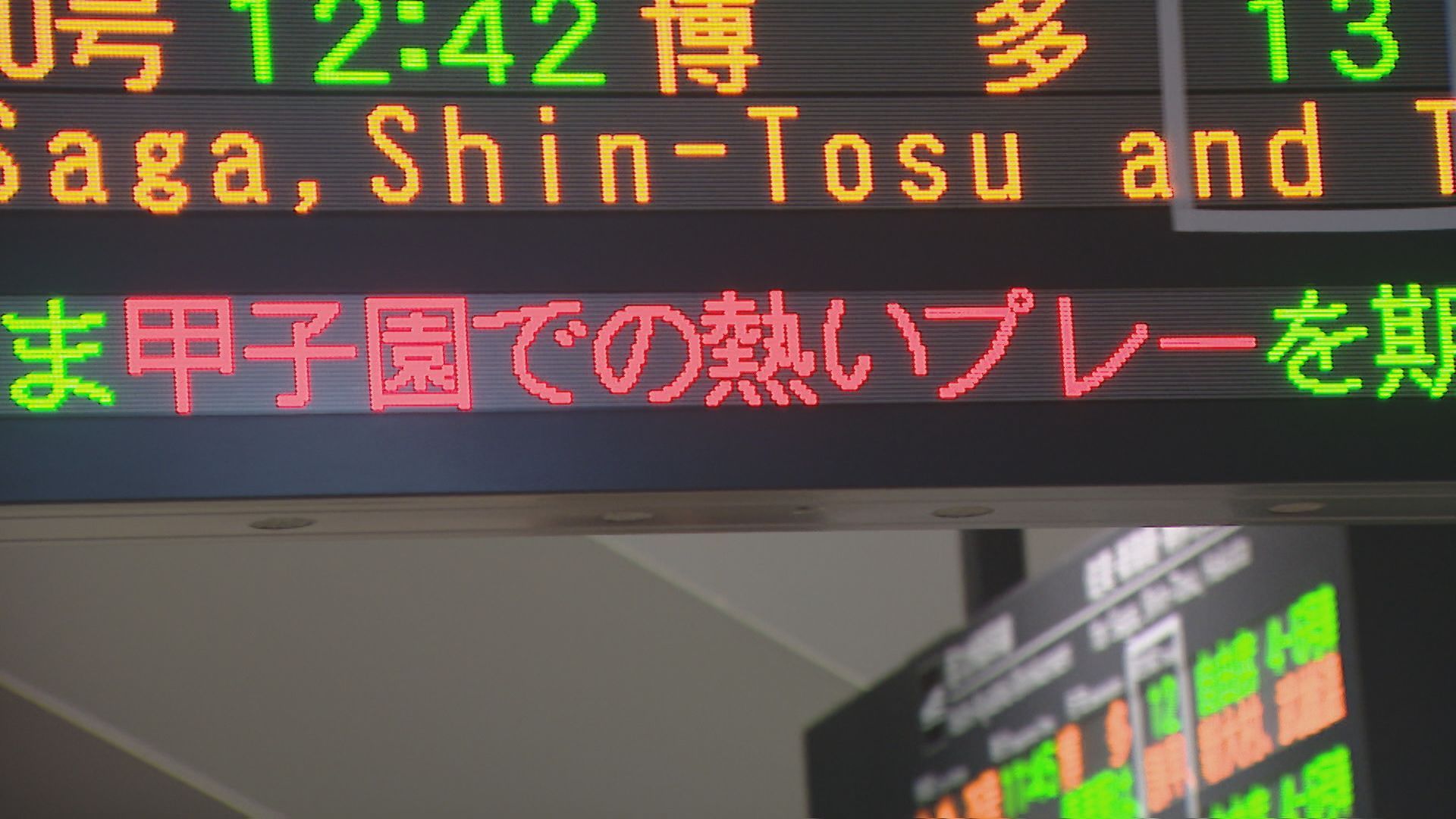 JR長崎駅の電光掲示板には、応援メッセージも…。