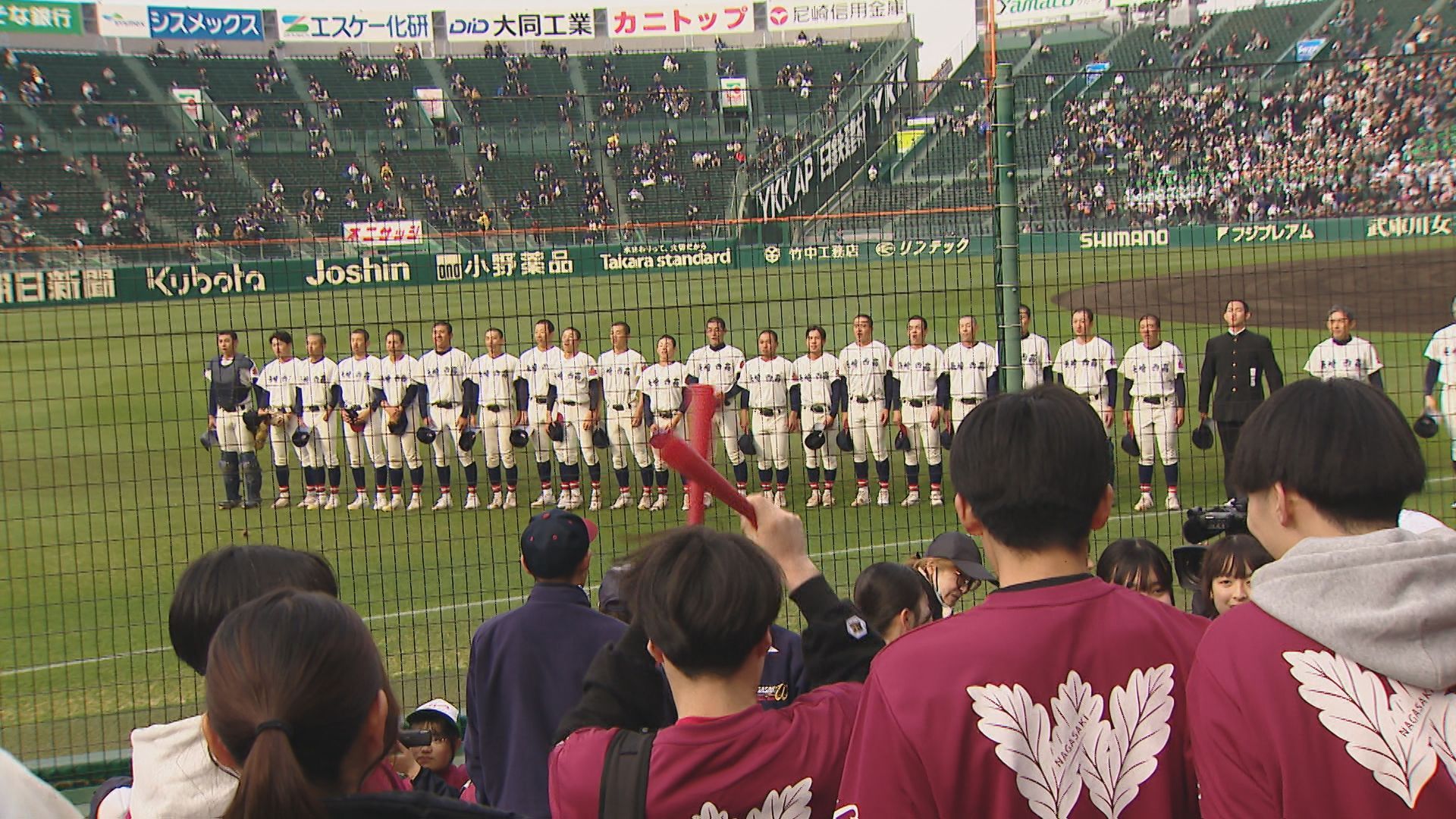 第98回選抜高校野球大会の閉会式で応援団賞が発表され、21世紀枠で出場した長崎西高校が最優秀賞に選ばれました。閉会式には、長崎西の応援団を代表して川添結丸さんが参加しました。